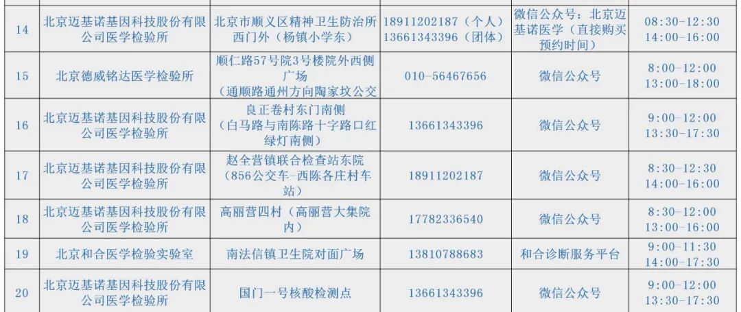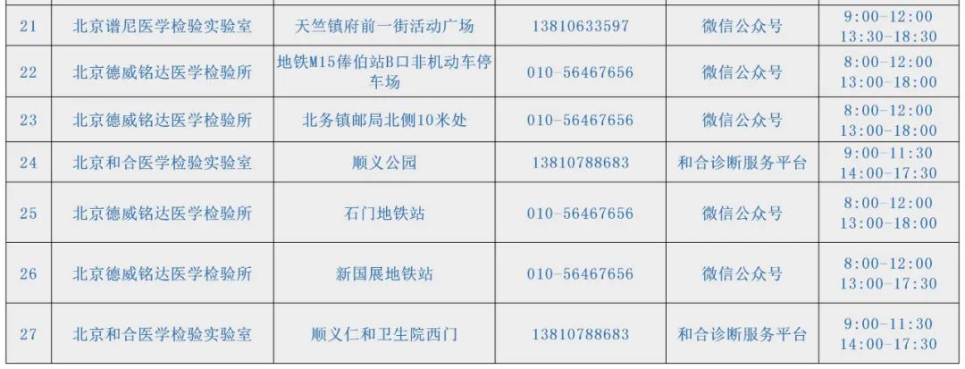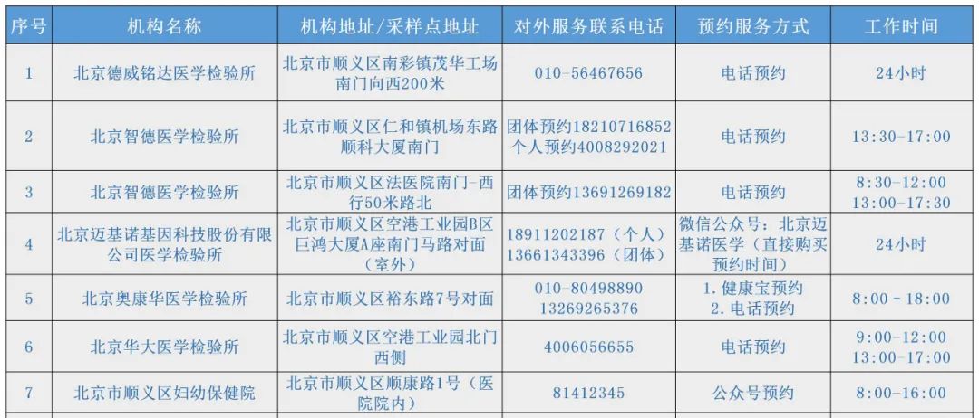顺义区开放核酸检测采样点↓↓↓
