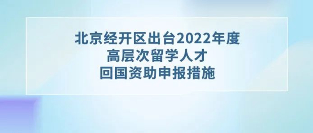 为全面落实中央和市委人才工作会议精神,根据人力资源和社会保障部《关于开展高层次留学人才回国资助试点工作的意见》(国人部发〔2003〕45号)和《关于开展2022年度高层次留学人才回国资助试点工作的通知》(人社专技司函〔2022〕18号)要求,结合北京市人才工作局《关于开展2022年度北京市高层次留学人才回国资助试点工作的通知》,现北京经济技术开发区2022年度高层次留学人才回国资助申报工作有关事项通知如下: