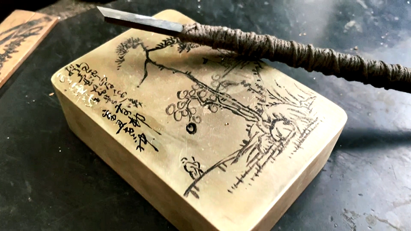 宋国柱说:“刻铜需要巧妙的力道,手腕要有力,同时要紧握刻刀,刻刀在铜板上的走向才能顺畅自如,刻出的深浅才能如心想,这些都需要长时间的磨练与经验。”