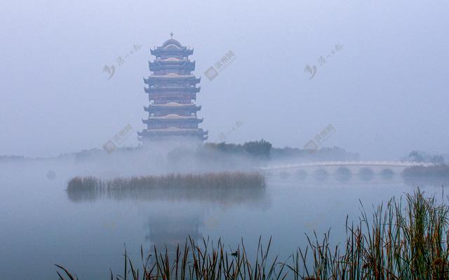 2021年10月31日,雾锁黄河楼。