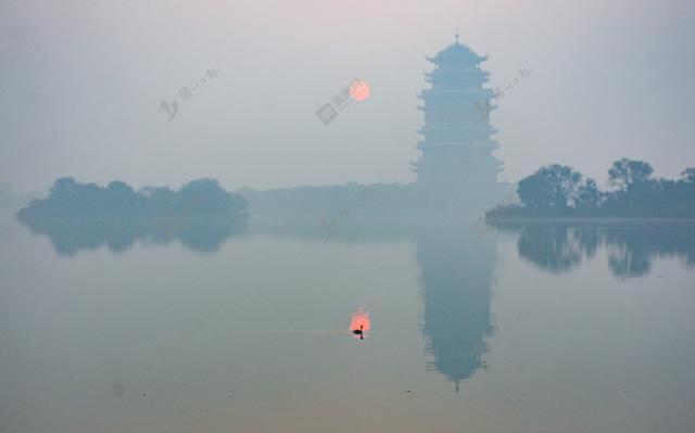 2021年11月18日,黄河楼日出。