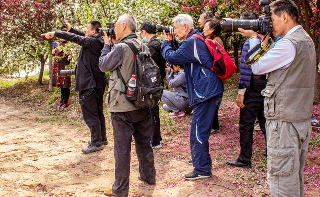 2021年4月13日,海棠园摄影爱好者取景。