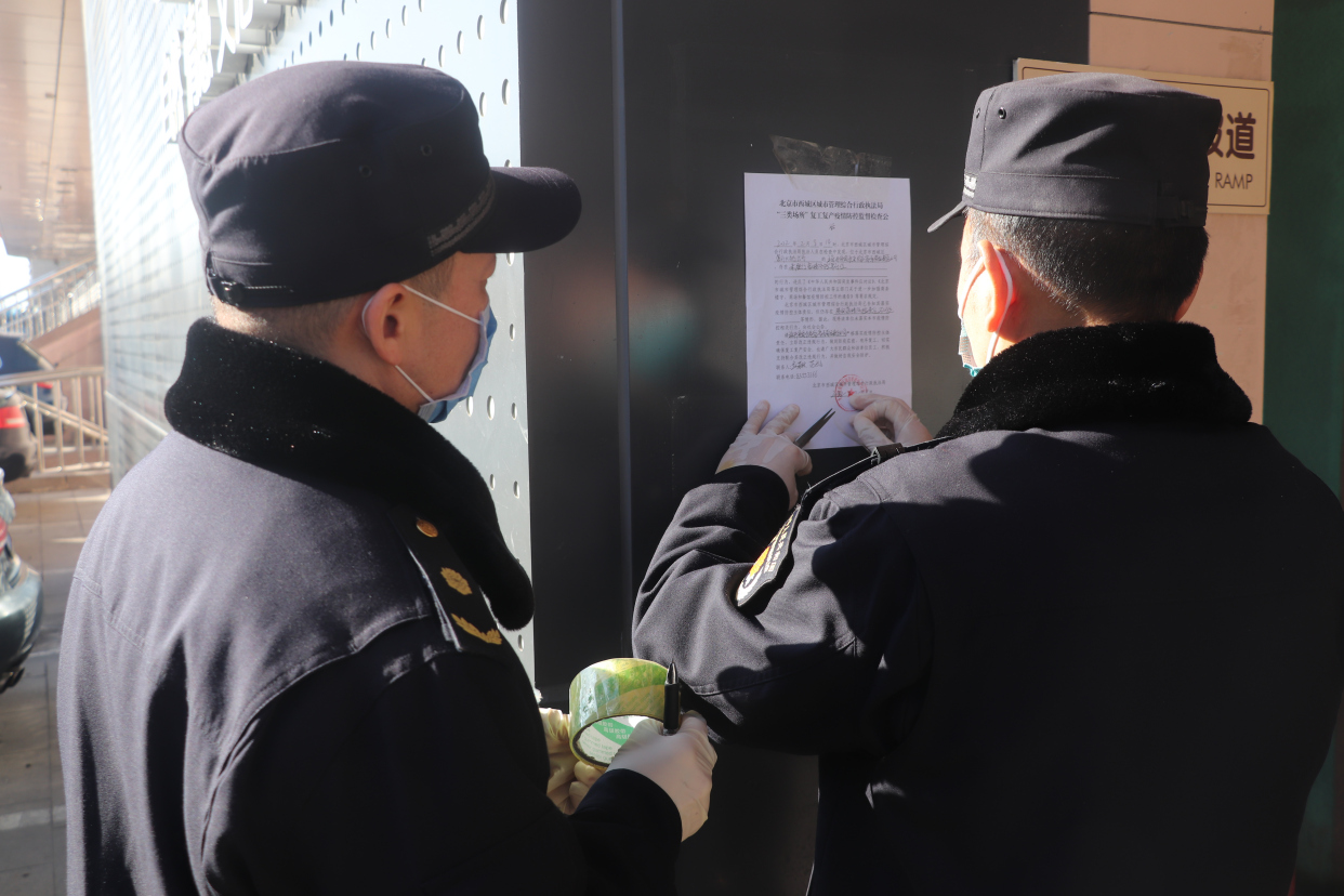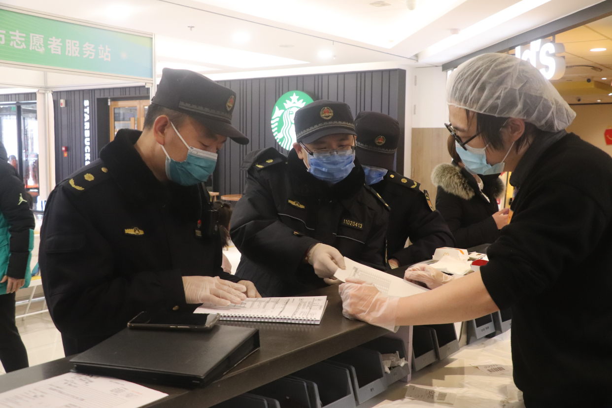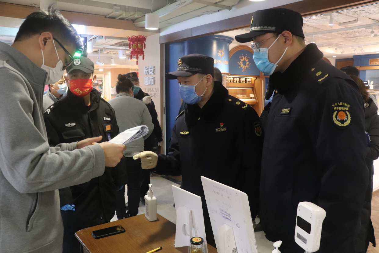 送走春节长假,迎来节后开工。随着返京人员的增多,大型商超人流量增大,是疫情防控的重点场所之一。2月8日下午,区城管执法局对辖区内的长安商场,开展疫情防控突击执法检查。