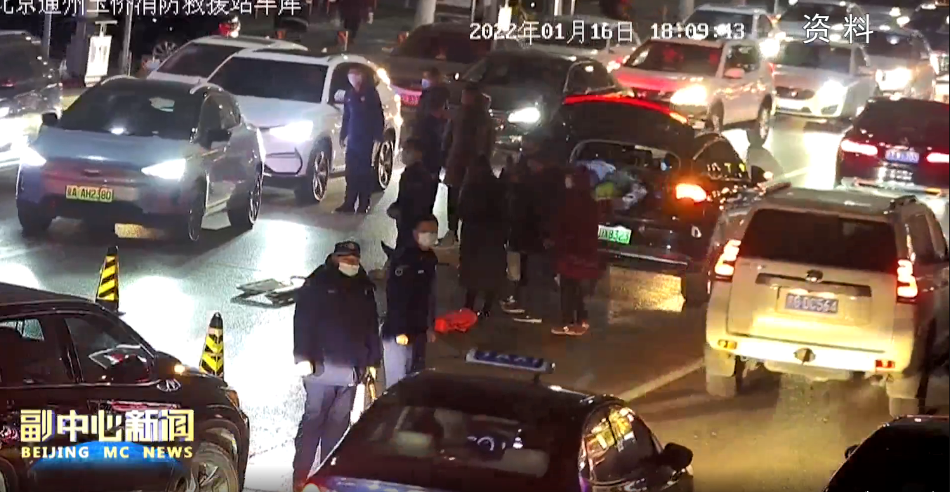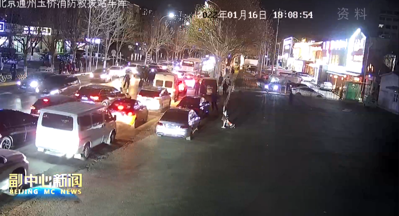 晚18时,通州支队玉桥消防救援站消防员吴强正在站岗,突然听到消防站门口方向传来撞击声和惨叫声。