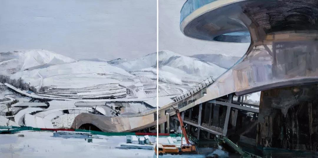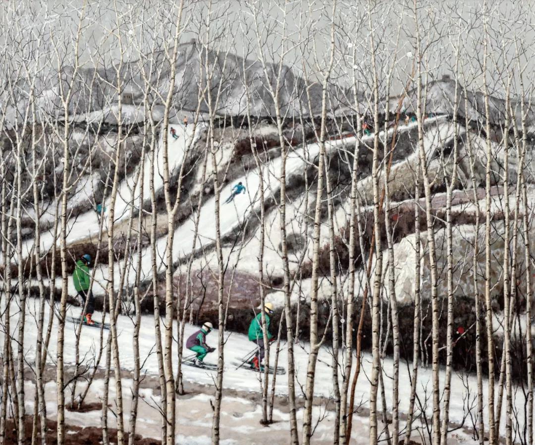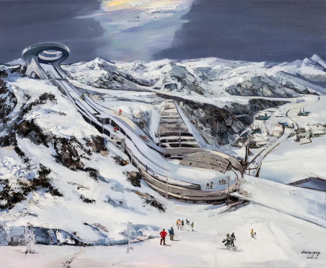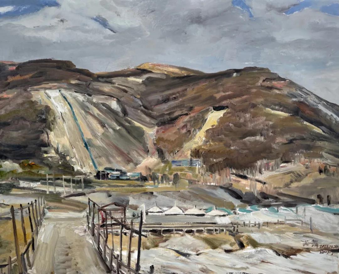 图为祁海峰的油画作品《太舞四季小镇写生》。