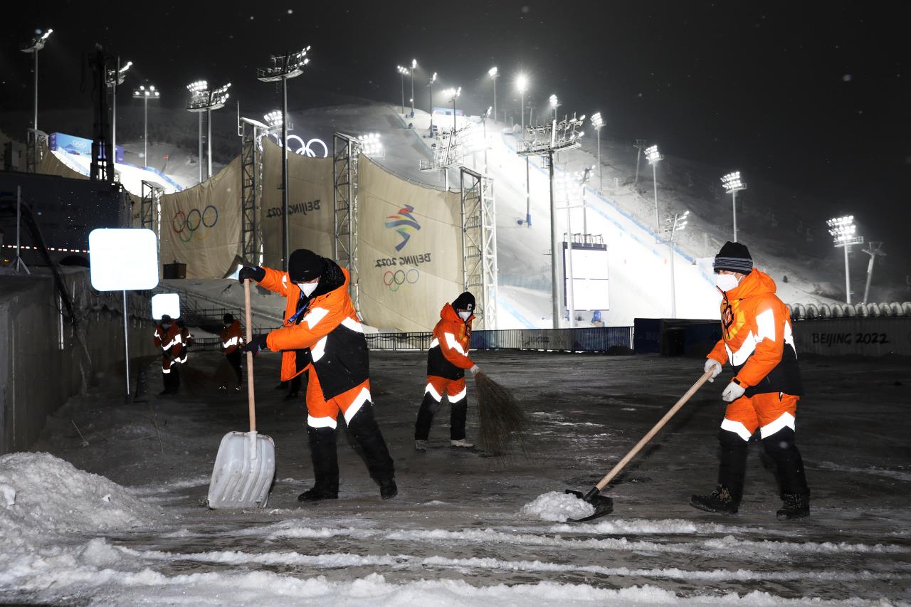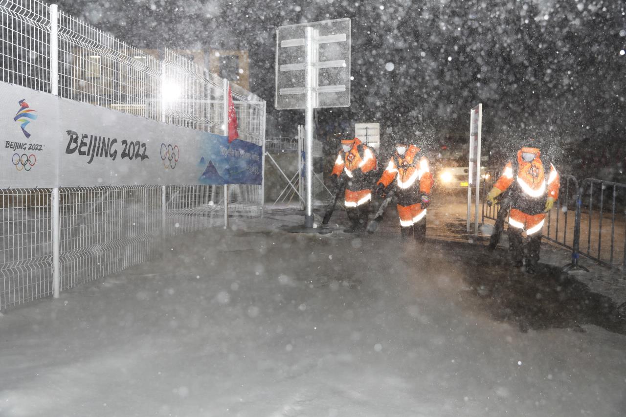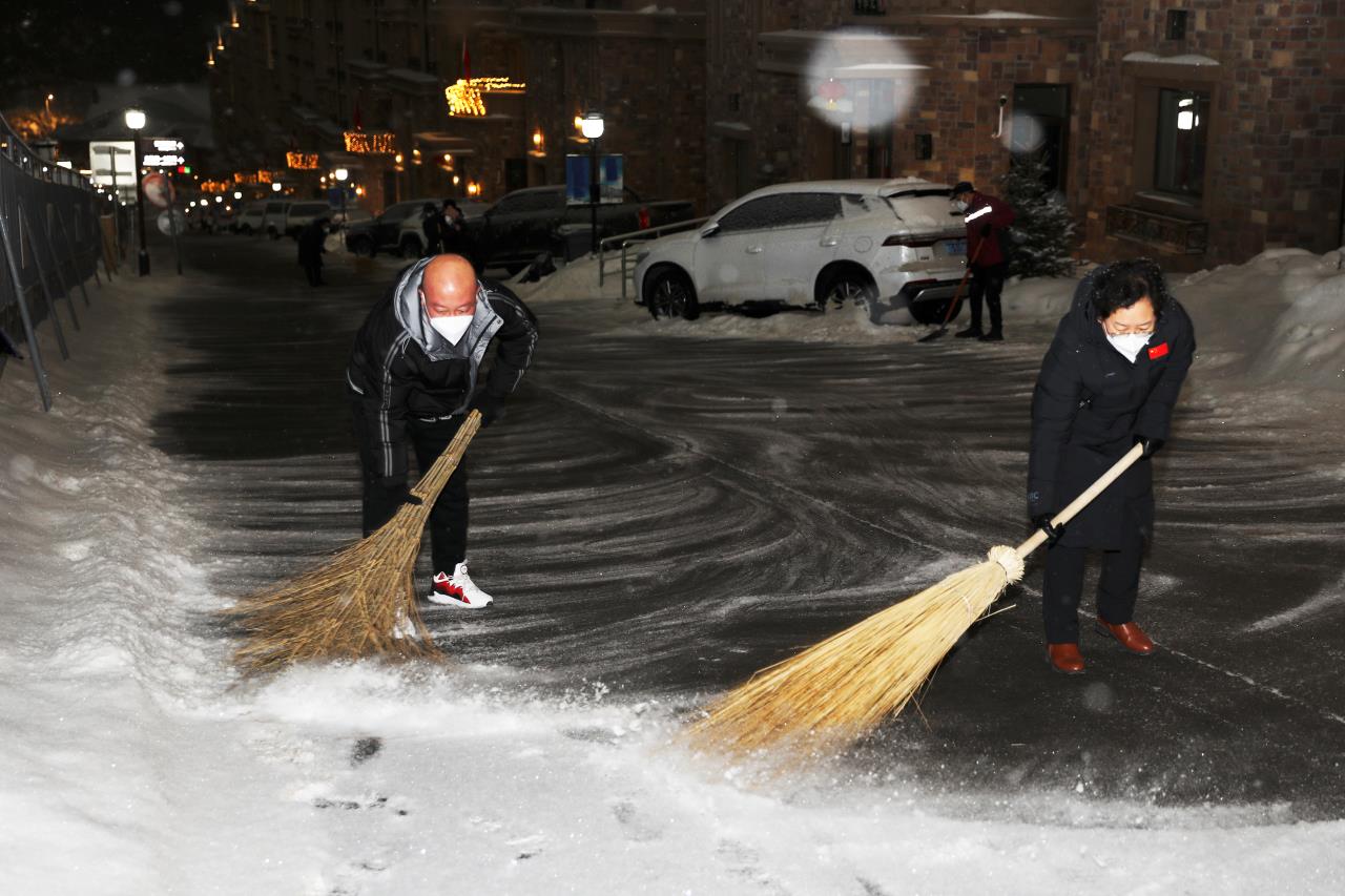 2月13日凌晨2时30分许,北京冬奥会张家口赛区又迎降雪,按照预案,云顶场馆群团队成员连夜出动,铲冰除雪团队人员和机械设备循环作业,做到即下即清,保障场馆道路畅通。(武殿森 陈亮)