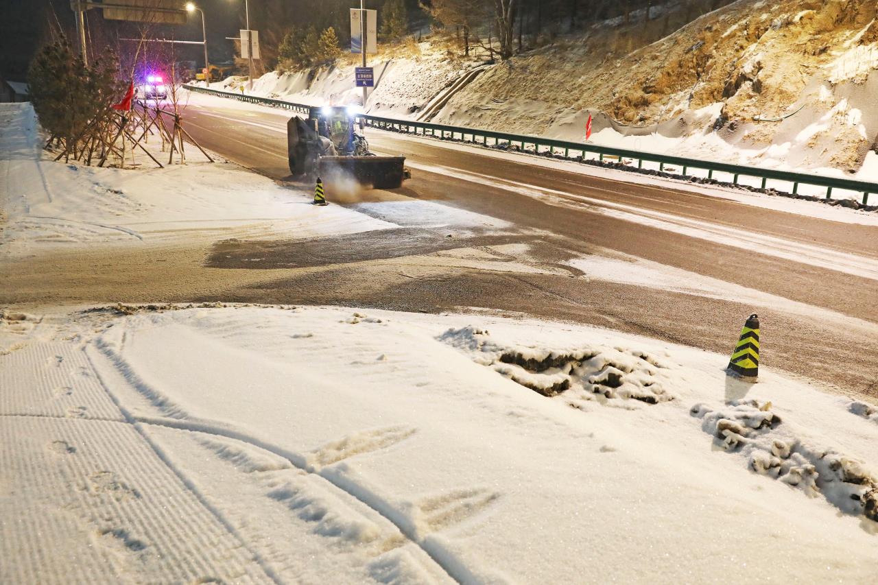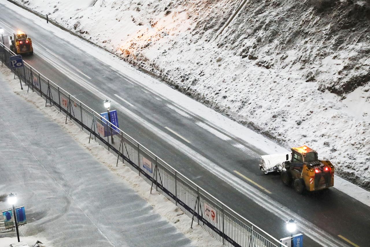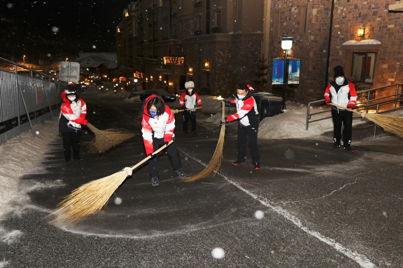 2月13日凌晨2时30分许,北京冬奥会张家口赛区又迎降雪,按照预案,云顶场馆群团队成员连夜出动,铲冰除雪团队人员和机械设备循环作业,做到即下即清,保障场馆道路畅通。(武殿森 陈亮)