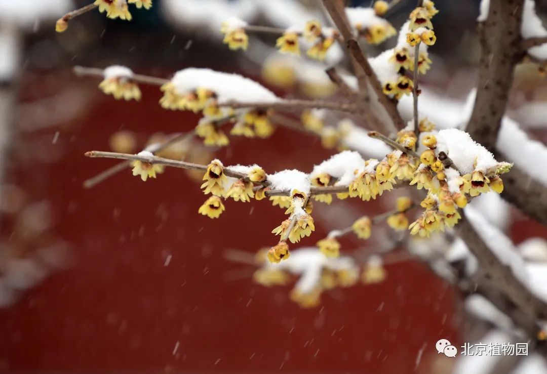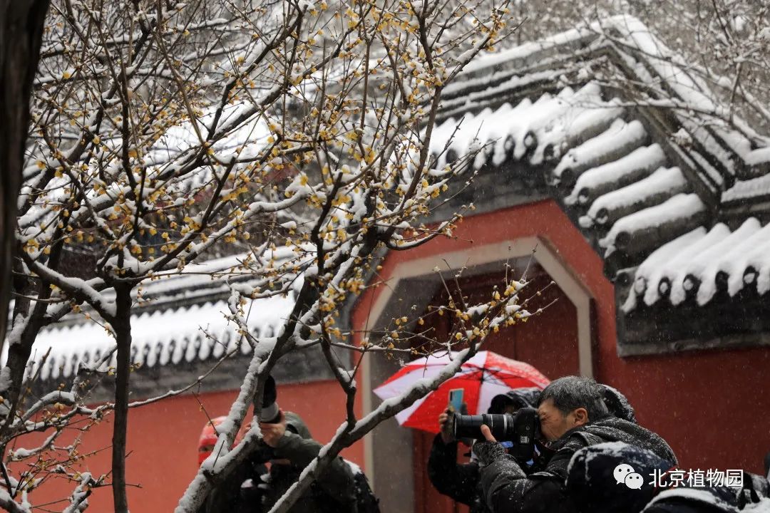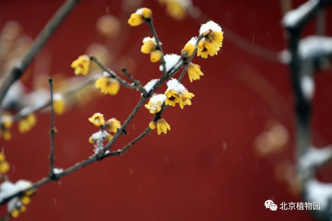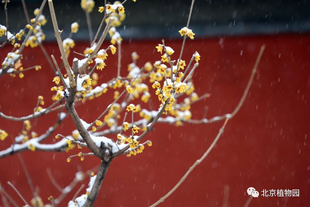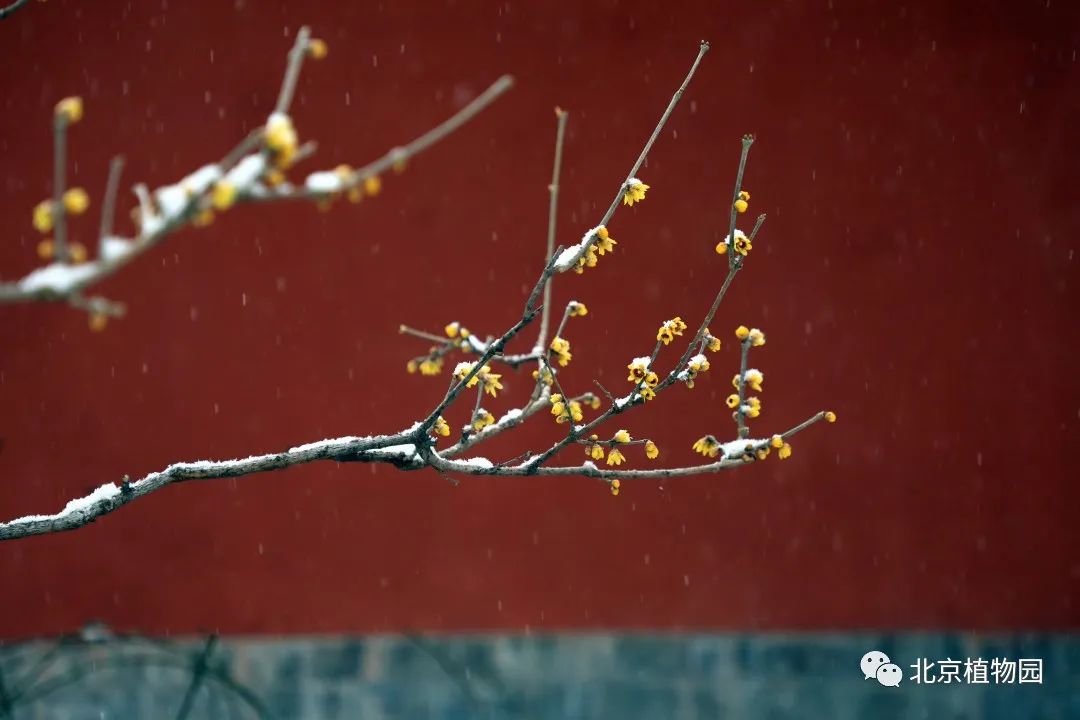 雪中赏蜡梅可以是说植物园的一大特色。在卧佛寺内,白雪与红墙映衬着金黄色的蜡梅分外夺目,再加上不时传来的阵阵幽香,使得众多游客纷纷来此踏雪寻”梅“。