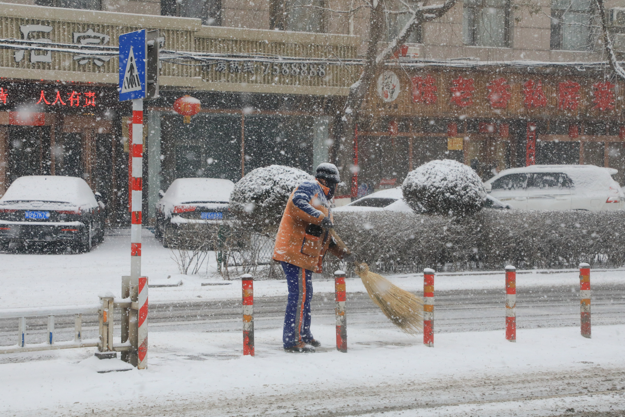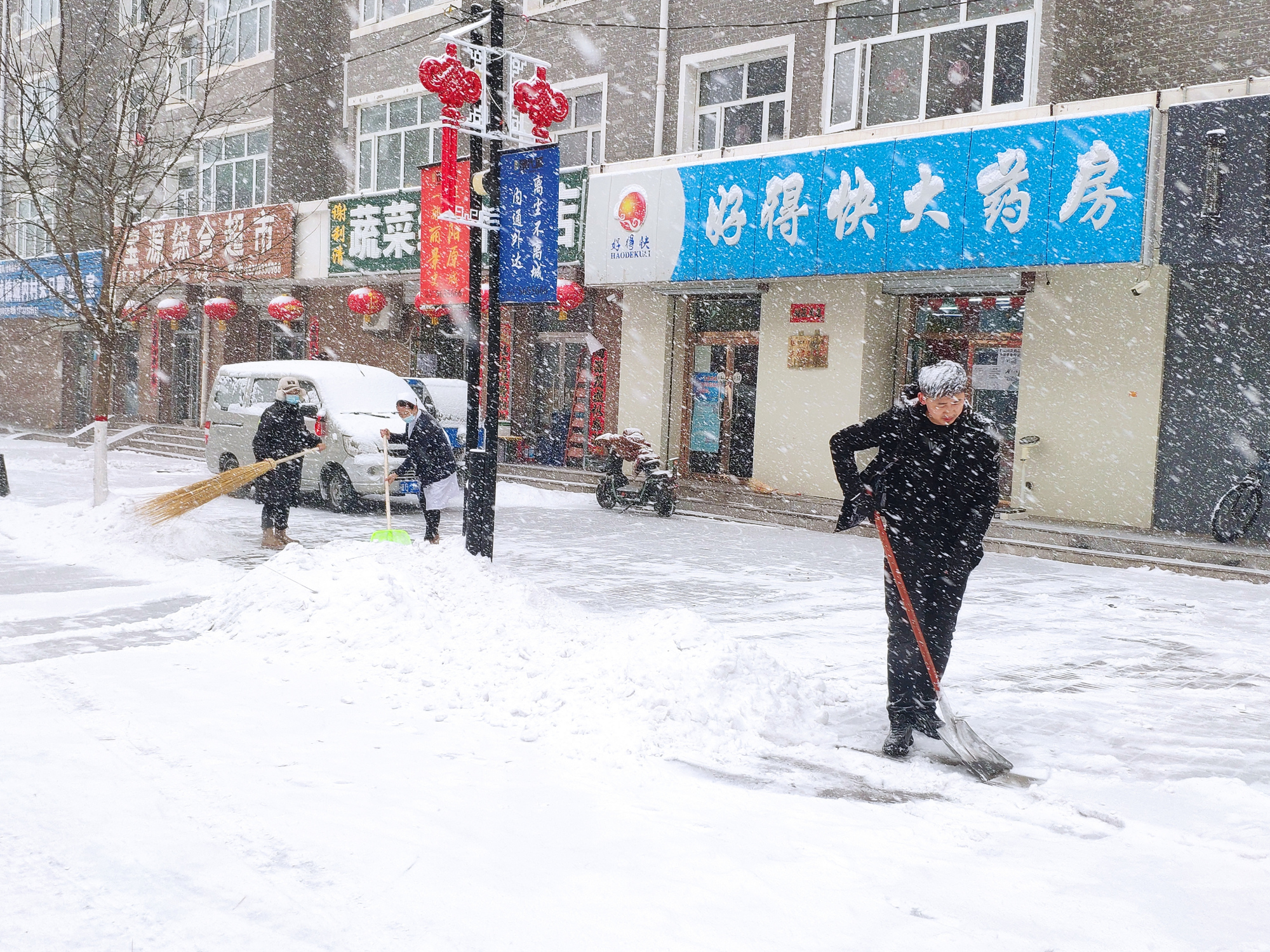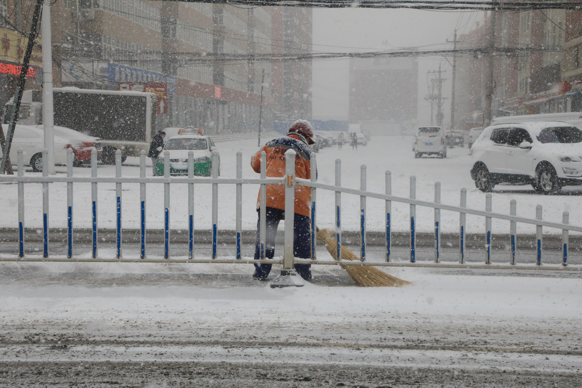 2月12日至13日,河北省张家口市阳原县遭遇强降雪天气,全县普降大雪,最多可达6cm。为保障人民群众的出行安全,公安、交通、环卫、城管等部门、志愿者以及商户群众从13日一早纷纷投入到清理积冰积雪行动中去。“以雪为令、闻雪而动、随下随清、雪停路净”,那一抹抹“色彩”,为寒冷的雪天增添了足足的温暖。