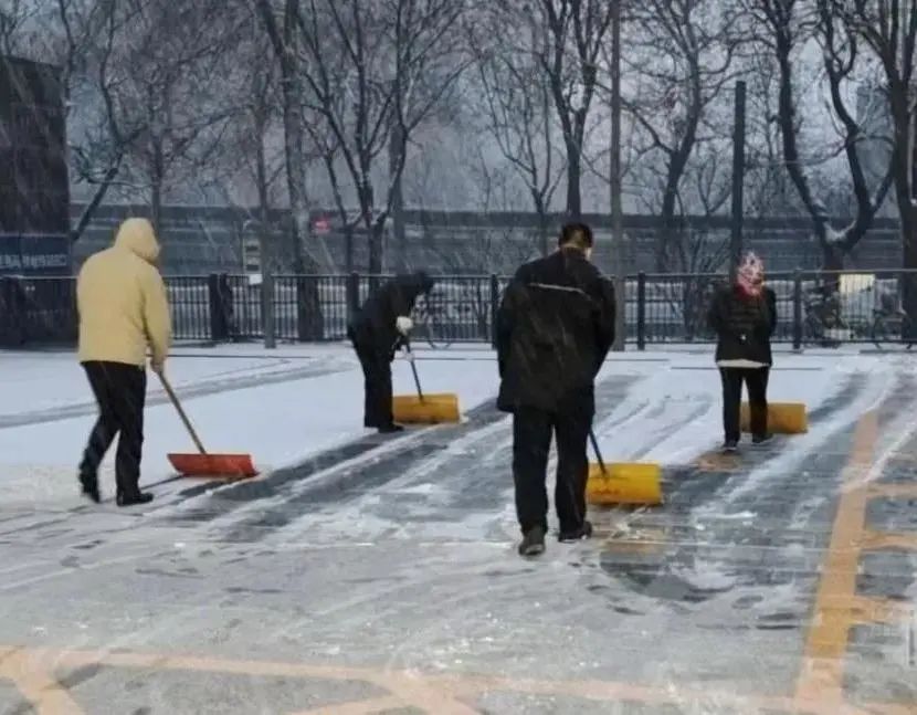 为全力迎战此次降雪,按区城市管理委的统一部署,所有应急作业人员迅速到岗,对涉奥区域、重要商业景点等重点设施周边以及全区重点道路、桥区匝道、过街天桥等点位开展融雪除冰作业,车辆作业单位及时提醒驾驶员做好车辆“三检四勤”工作,关注雪天行车安全。