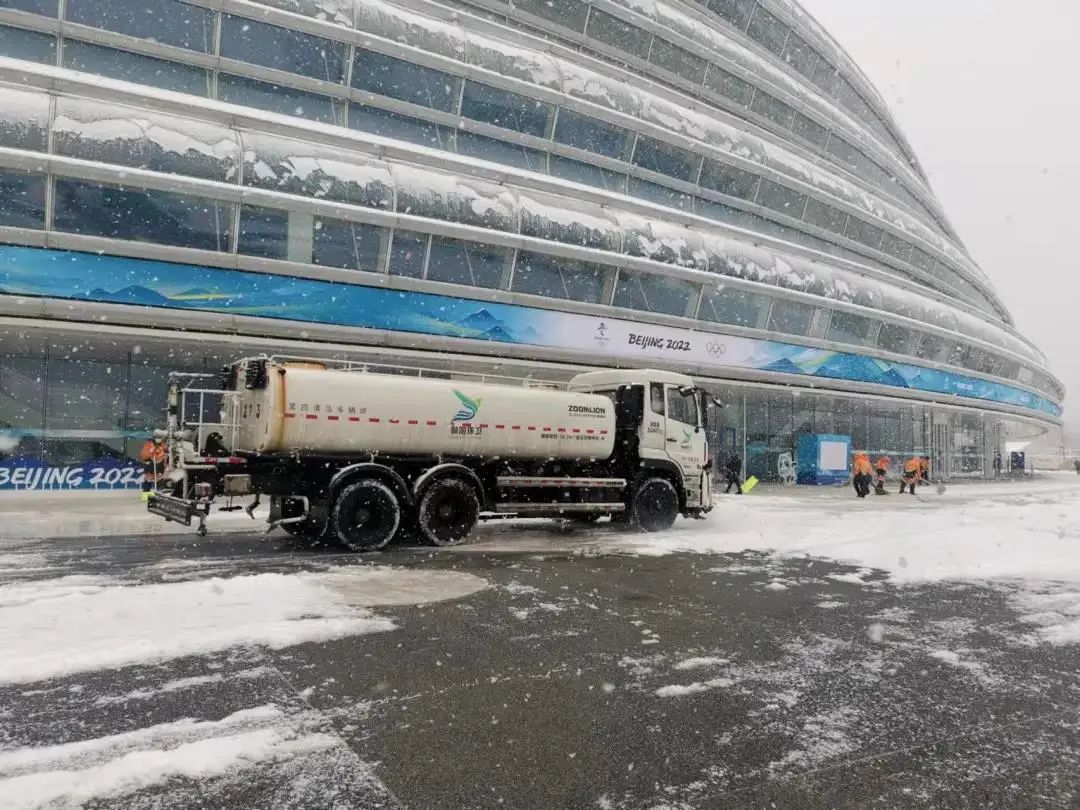 其中奥运核心区出动多功能除雪车4车次、作业人员200人次、融雪水车32车次,对19条奥运专用道、涉奥酒店周边及沿线的道路采取人机配合的方式,加强扫雪铲冰作业力度,确保道路无积雪积冰。