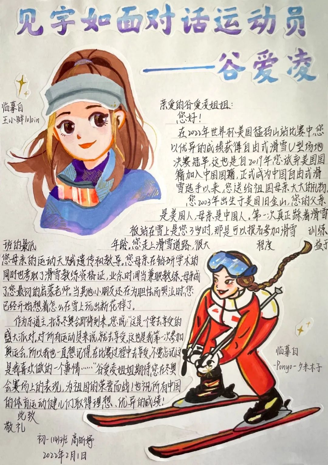 ⬆北京市第十五中学初一(14)班高昕婷致信谷爱凌