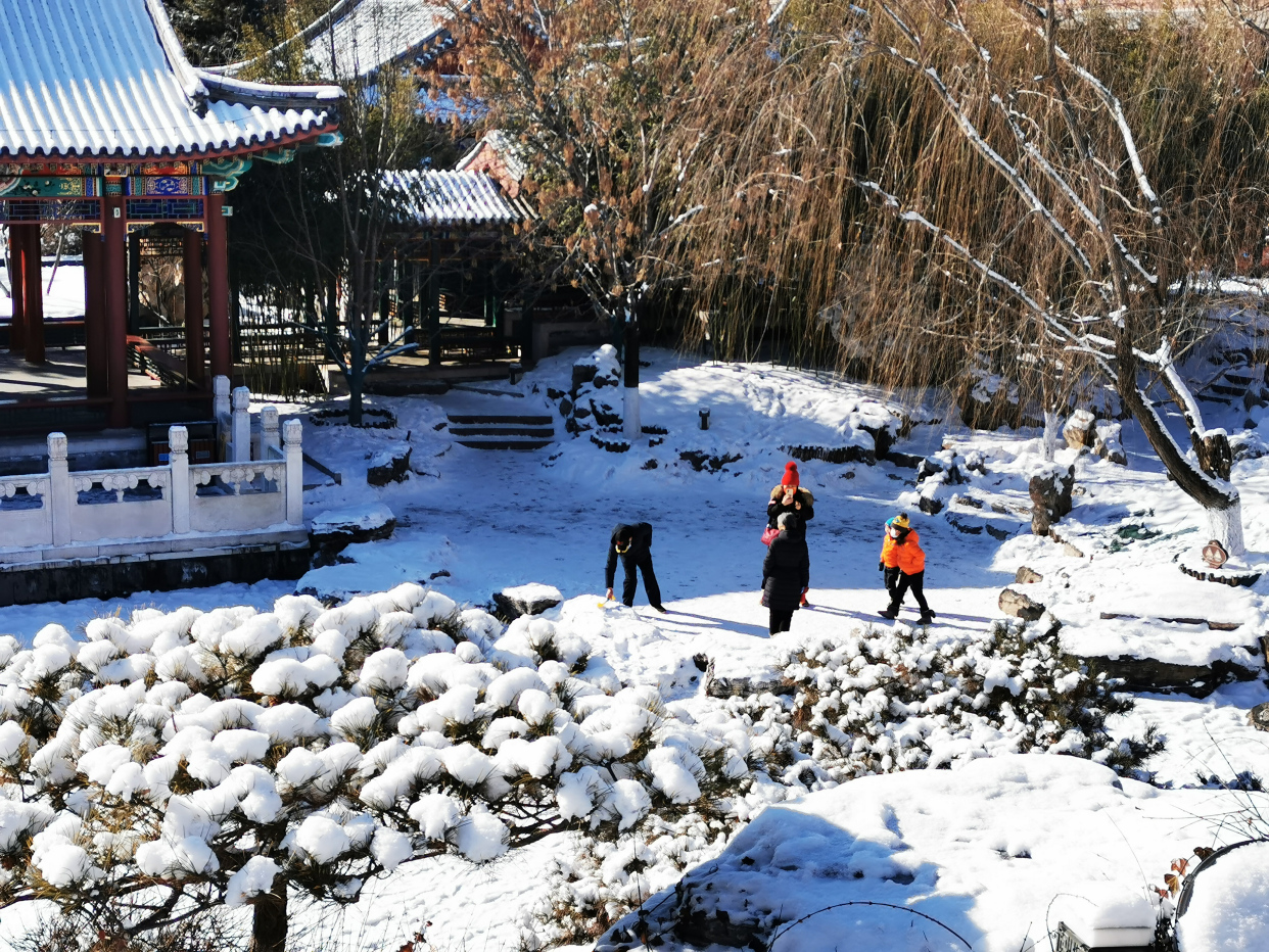当下正直万物即将复苏时节,突如其来的大雪让513公顷的北京园博园银装素裹,各式建筑均披上统一的外衣,雪景随建筑外形变化而变化,早早感知春意将来的动物在冰雪中寻匿食物,早春植物也吐露出新芽,一片万物生机盎然,蓄势待发之势。雪后的园博园早就是著名的打卡圣地,络绎不绝的人群时而踏雪而至,时而载歌载舞,一幅人与自然的和谐画面展现在丰台大地上。