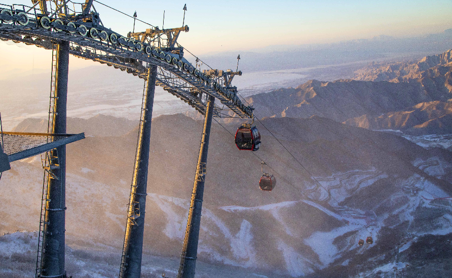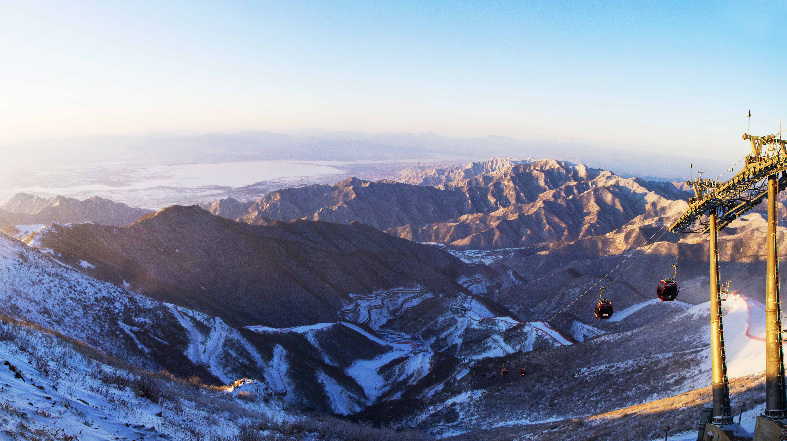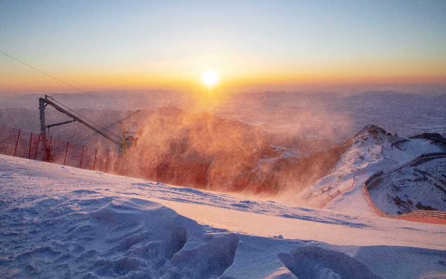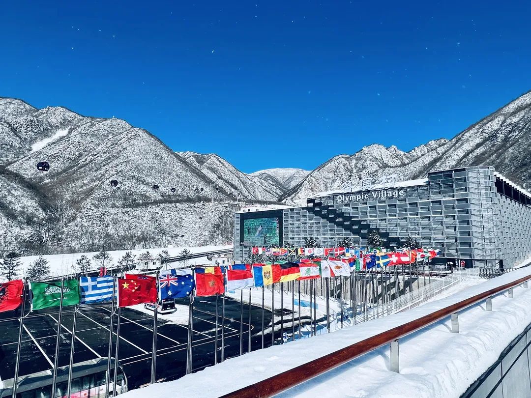 雪霁,冬奥延庆赛区天空湛蓝,远山苍茫。“雪游龙”遨游山巅,“雪飞燕”振翅欲飞,冬奥村内纯洁白雪映着各国旗帜,分外多姿……