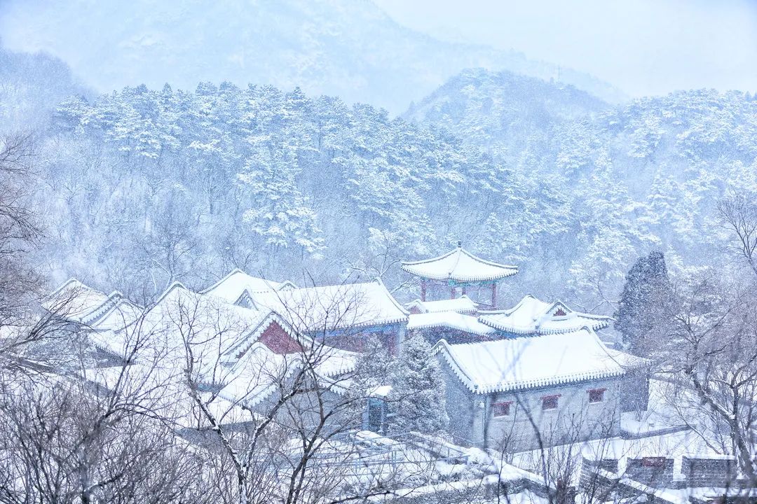 海陀山谷,一派诗情画意。瑞雪将整个延庆冬奥村装点得沉静素雅。