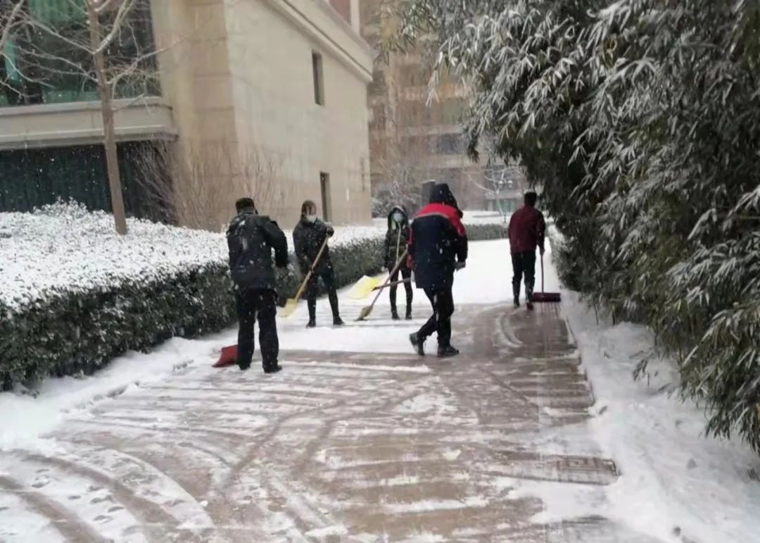 ▲各园区楼宇组织物业管理人员铲冰扫雪