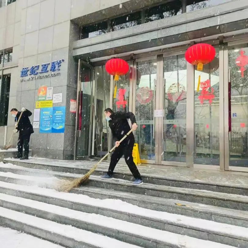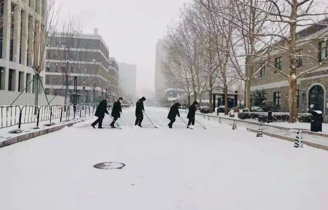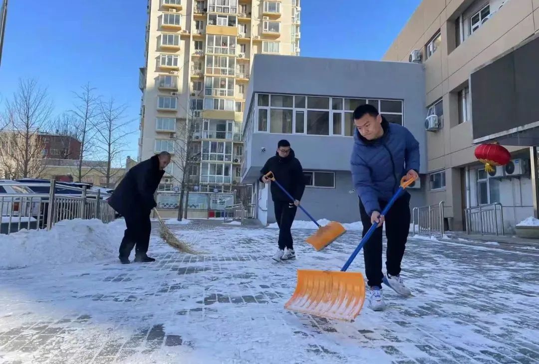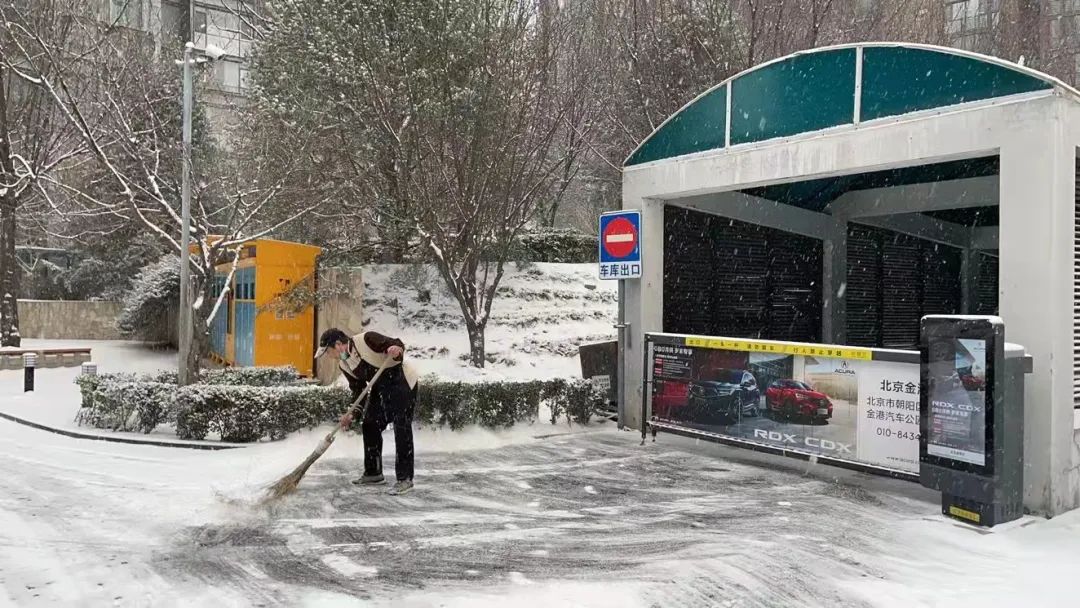 酒仙桥街道各园区楼宇纷纷组织物业管理人员进行铲冰扫雪工作,为商务楼宇内人员安全及园区内车流通畅保驾护航。
