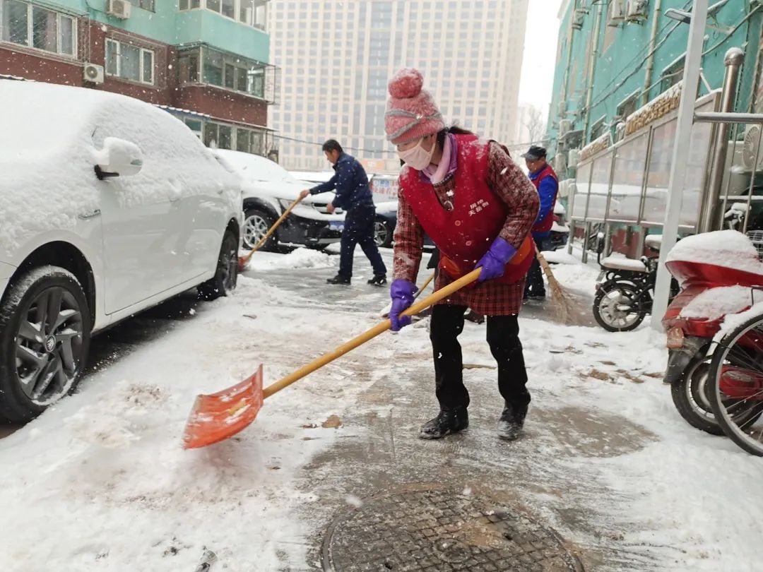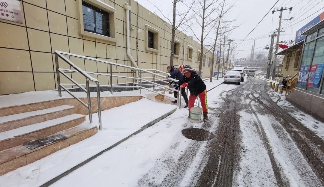 各社区迅速响应,组织社工、党员、志愿者、辖区居民等开展扫雪除冰行动。清扫现场大家纷纷拿起扫帚、铁锹等铲雪工具,重点清扫路口及湿滑路段,为居民扫出一条条“安全路”。