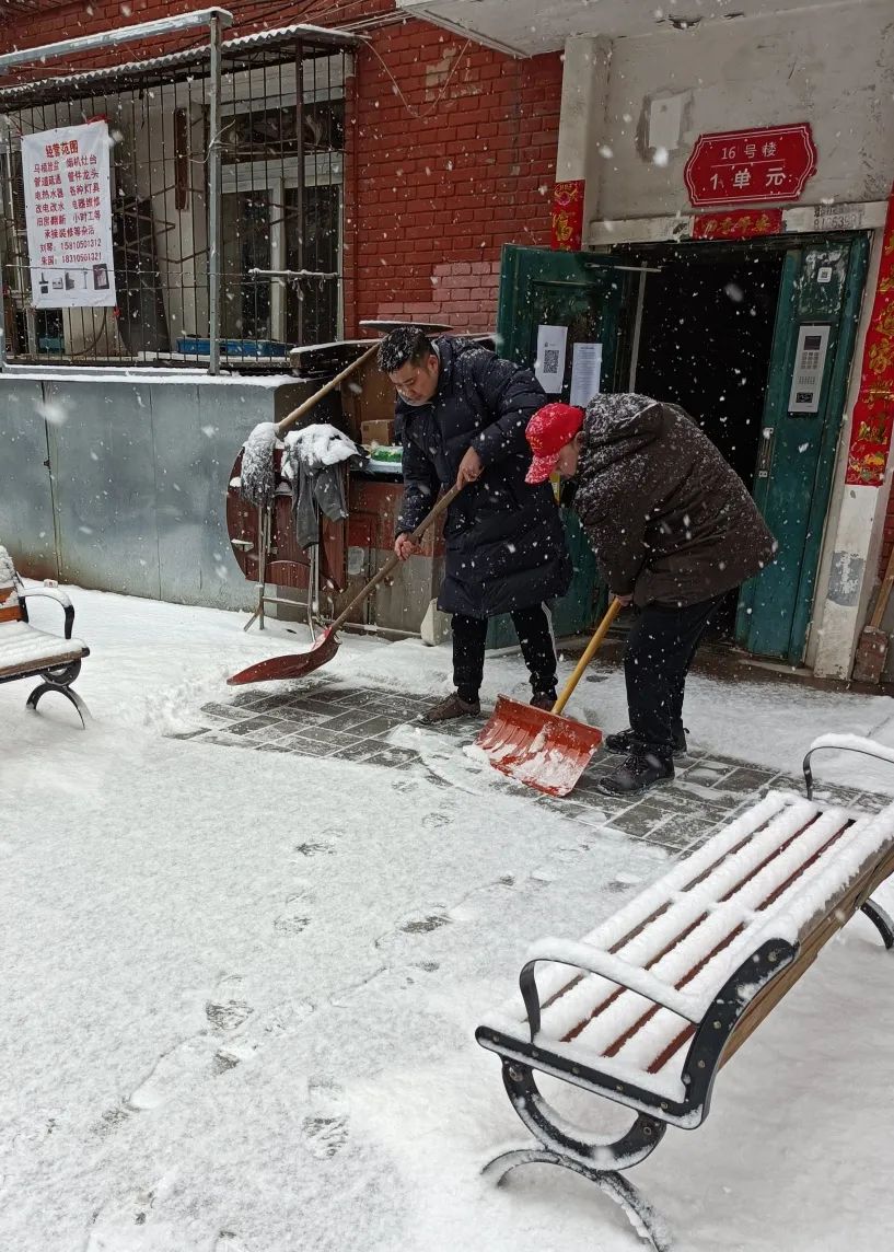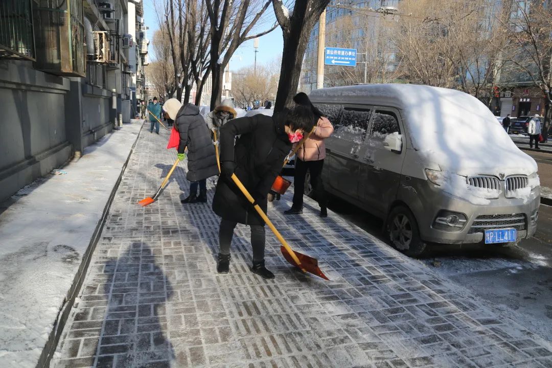 充分发挥基层党组织的战斗堡垒作用和党员的先锋模范作用。驼西3号院南门不属于物业管辖区域,厚厚的积雪给辖区居民的出行带来诸多不便,驼西社区党委积极对接链家党支部共同扫雪铲冰,为居民出行提供便利。