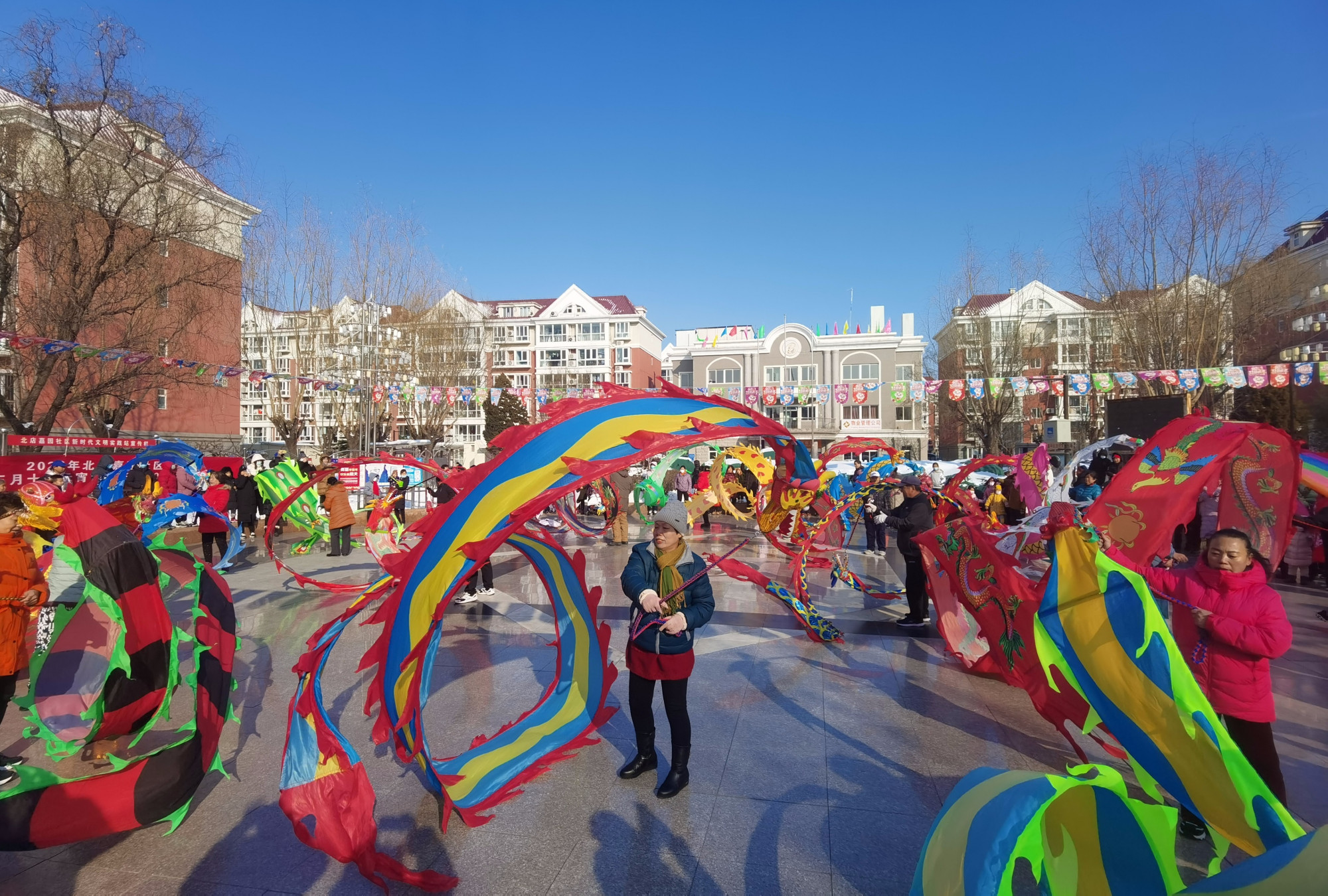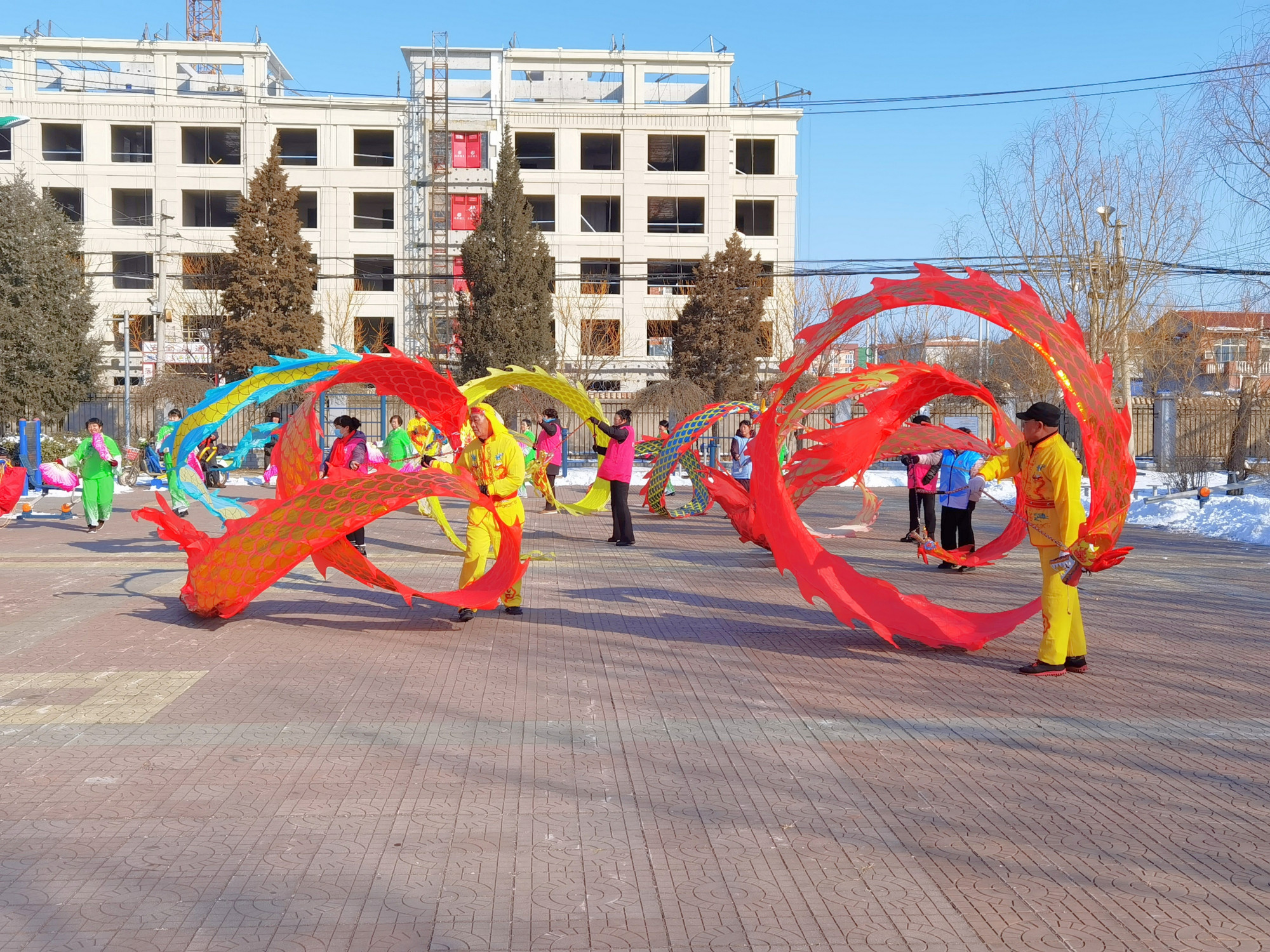 “小车会”结束后,“舞龙”登场了。表演者人手一条漂亮的“龙”,随着音乐响起,十余条满载着希望和祝福的祥龙一齐舞动,将富贵团圆、吉祥如意送给千家万户,也为居民送去了欢乐。