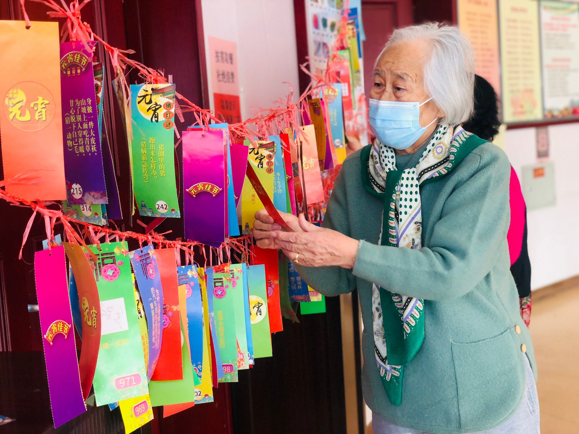 回龙观街道金域华府社区也举办了“元宵节 猜灯谜”活动。现场,各色灯笼迎风飘扬。灯谜垂在灯笼下方,有大家喜闻乐见的字谜,还有猜成语、猜动植物等。社区居民三两成群看着灯谜,有的热烈讨论,有的紧锁眉头冥思苦想,现场热闹非凡。