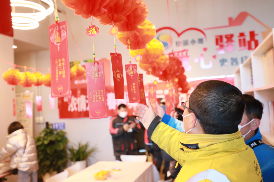 此外,街道还组织“小哥”们体验了“欢乐夹元宵”“猜灯谜”“扎花灯”等娱乐活动,帮助大家在这里既收获了情谊,又享受了团圆之乐。