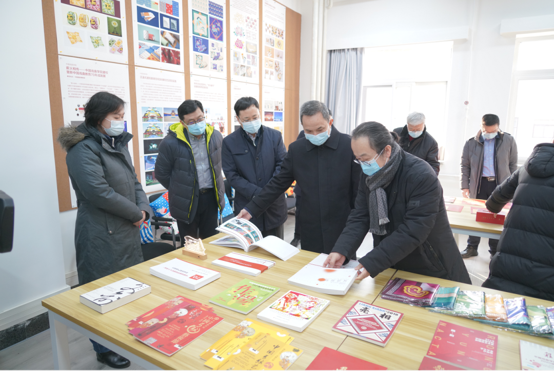 卢彦及督查组成员一行察看了新媒体艺术系戏曲新媒体创意传播成果展、戏曲动画工作室、研究生视觉与媒体艺术工作室,了解学院有关专业教育教学和服务大局情况。