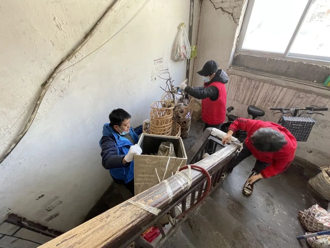 社区工作人员挨家挨户敲门确认物品归属,耐心劝导居民理解和支持此次清理行动,广泛宣传堆物堆料的危害;对一些长期堆放、无人认领的杂物统一清理到临时存放处,再由垃圾清运车统一运走处理。