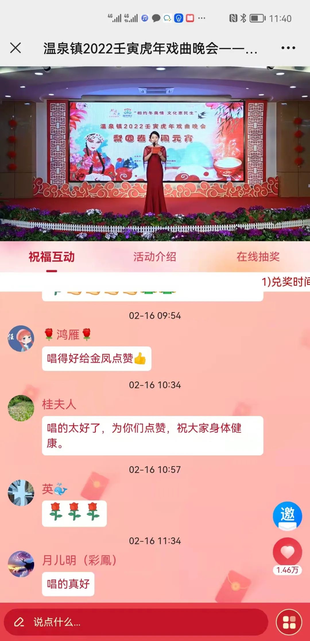 据主办方介绍:此次元宵佳节戏曲晚会较以往相比,无论是节目遴选还是舞台布置都更突显传统节日文化特色,吸引了大量地区百姓到直播间围观,点击率一度达到25.86万人次。温泉镇的优秀曲艺团队和西北旺镇曲艺团队同台献艺,增进了相互了解,搭建起了共同学习提升的平台,为今后增进两镇文化艺术交流、共同繁荣地区传统文化奠定了坚实基础。同时,我们也希望通过此次梨园春韵闹元宵戏曲晚会传递中华儿女阖家团圆、其乐融融的家国情怀,进一步提升地区百姓文化获得感,幸福感!