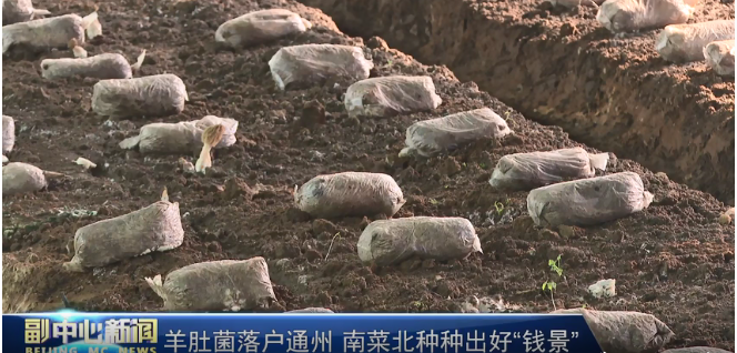 走进平整湿润的温室大棚,一排排营养袋平铺在菌田中,营养袋周围,一朵朵鲜嫩的羊肚菌破土而出,洁白色的菌柄支撑着浅褐色的伞状菌盖,铆足了劲往上长。