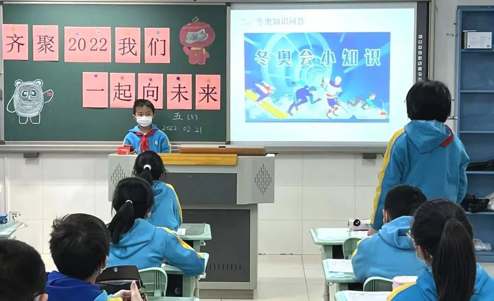 北京市朝阳区实验小学左家庄分校教师带领学生回顾冬奥精彩瞬间,学生们在传承冬奥精神的同时纷纷定下自己的新目标。