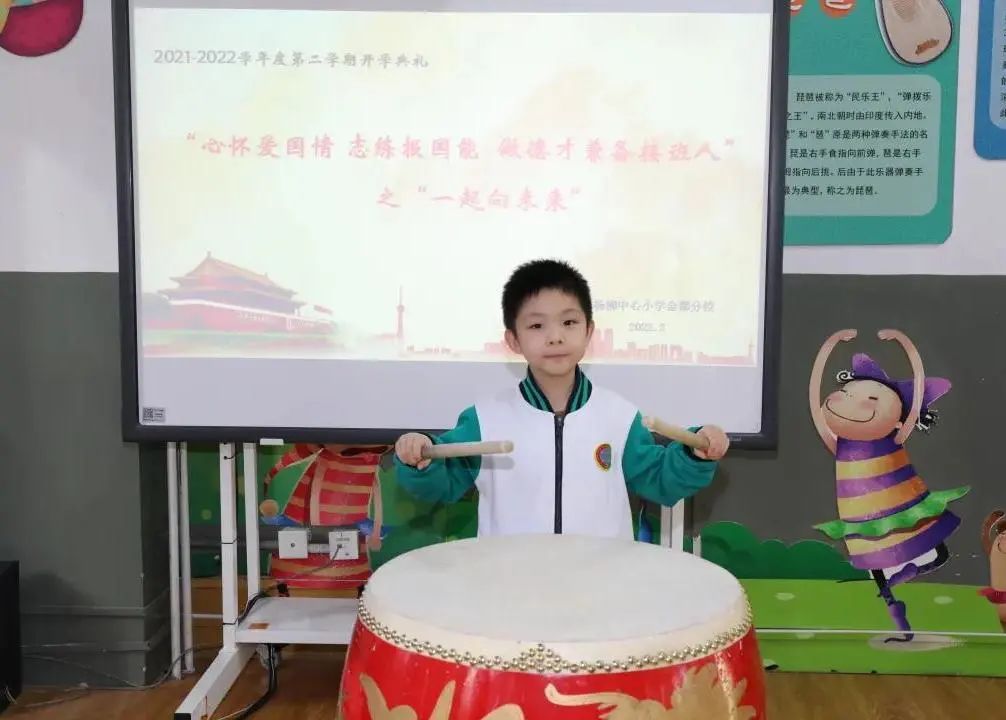 北京市朝阳区垂杨柳中心小学金都分校学生“击鼓明志”,传承中华礼仪,激励自我勤学苦读、尊师孝亲,提升个人素养。