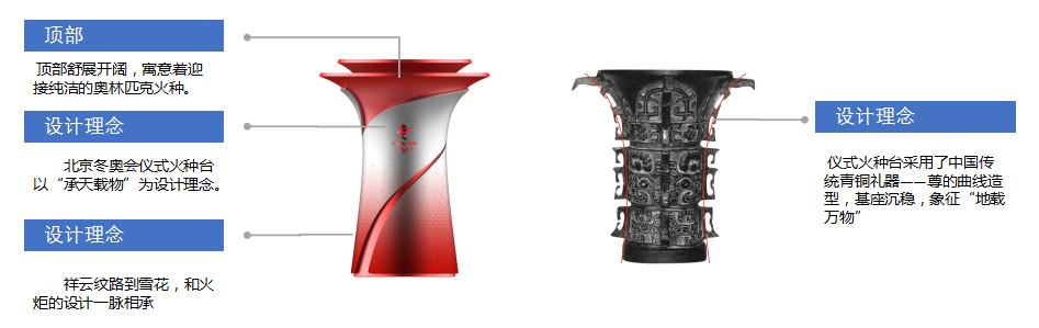北京冬奥会仪式火种台以“承天载物”为设计理念,创意灵感来自于中国传统青铜礼器——尊。