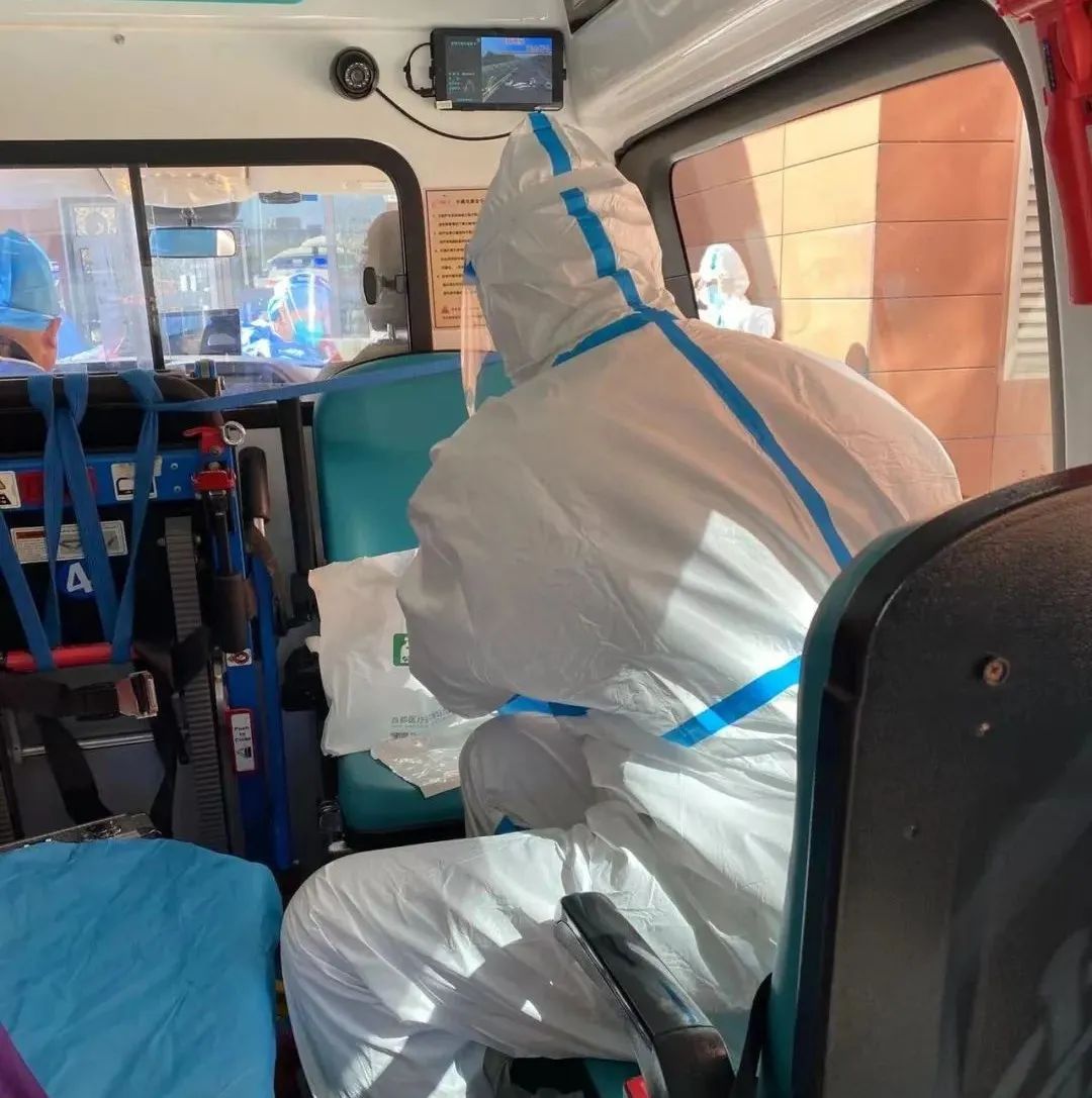 因为黄女士是管控区的居民,根据防控要求,整个就医过程需在全闭环管理下进行,所以拆线安排在了救护车上。“做好防护之后,徐主任安抚着孩子情绪,很快就顺利拆线。”黄女士说道。