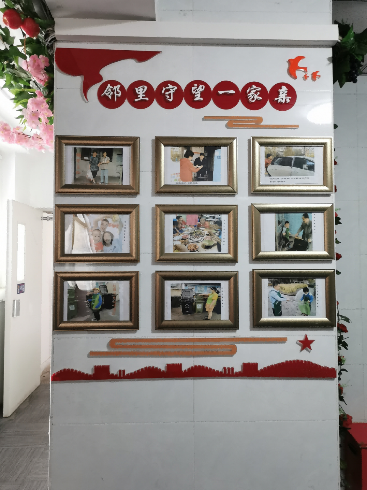 “这是我们的照片墙,每张照片背后都有一个故事。这张是楼里老人生病了,邻居帮忙照看;这张是楼里小朋友帮助腿脚不便的邻居开门……”走进15号楼,紧邻门口的一面墙十分惹人注目,“邻里守望一家亲”的字样下,一张张照片组成了照片墙。“去年年初,社区要打造‘楼门文化示范点’,居民们想着要把邻里故事当成我们楼独特的楼门文化展示出来,这才有了这面照片墙。”15号楼的和谐促员蔡惠娣说道。