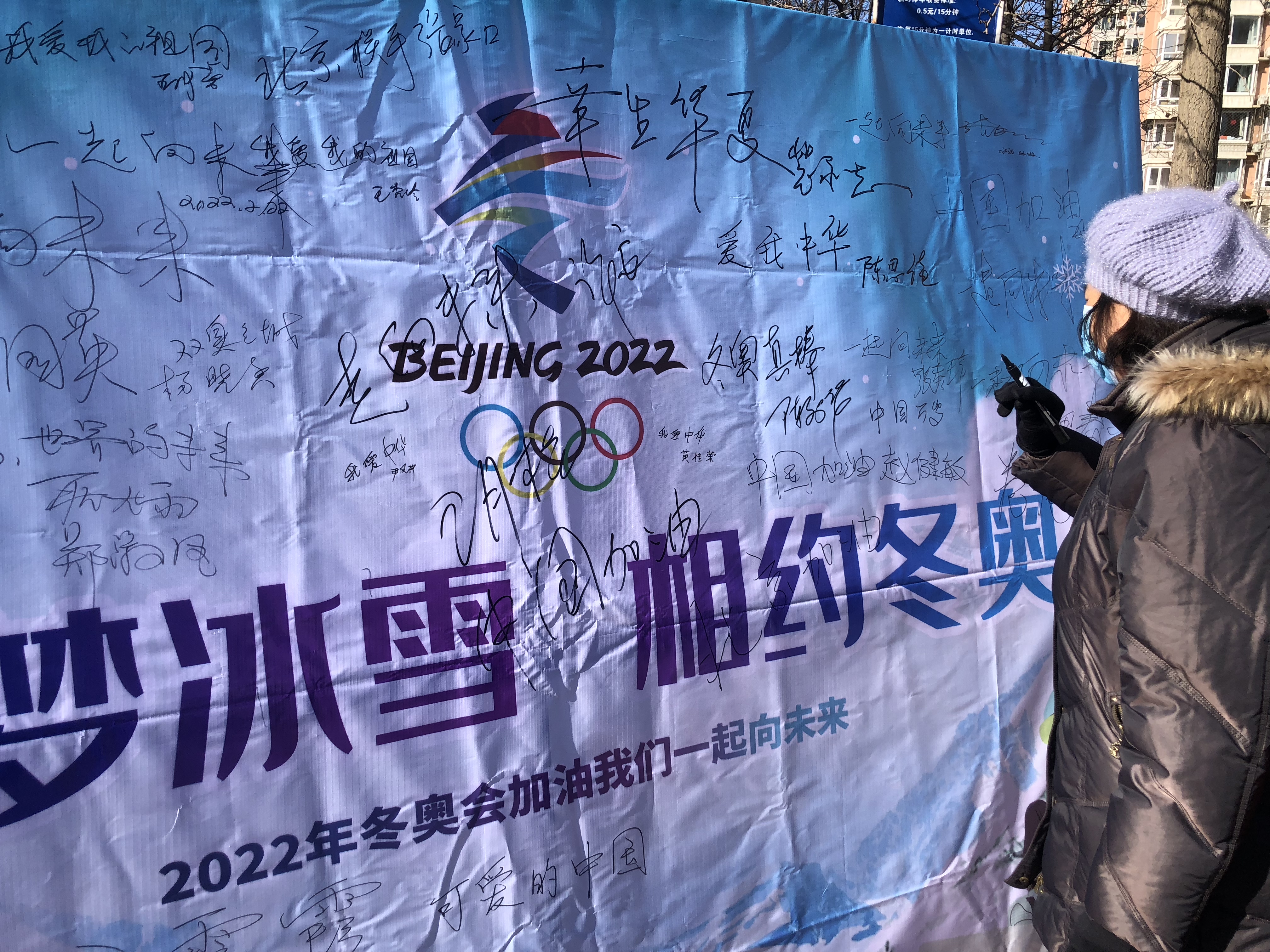 随后,社区工作者向居民普及宣传冬奥会、冬残奥会知识。为提高居民参与积极性,现场还举办了知识竞答。答对即可参与抽奖,有机会获得由社区工作者手工制作的冰墩墩、雪容融泥塑“糖葫芦”。居民们纷纷在背景展板上写下寄语,表达对中国运动健儿的鼓励与祝福,以及“一起向未来”的美好期待。