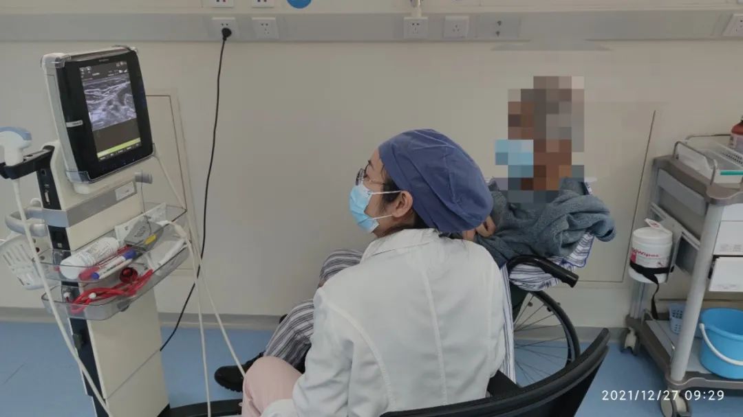 沈洋洋护士为患者进行穿刺规划