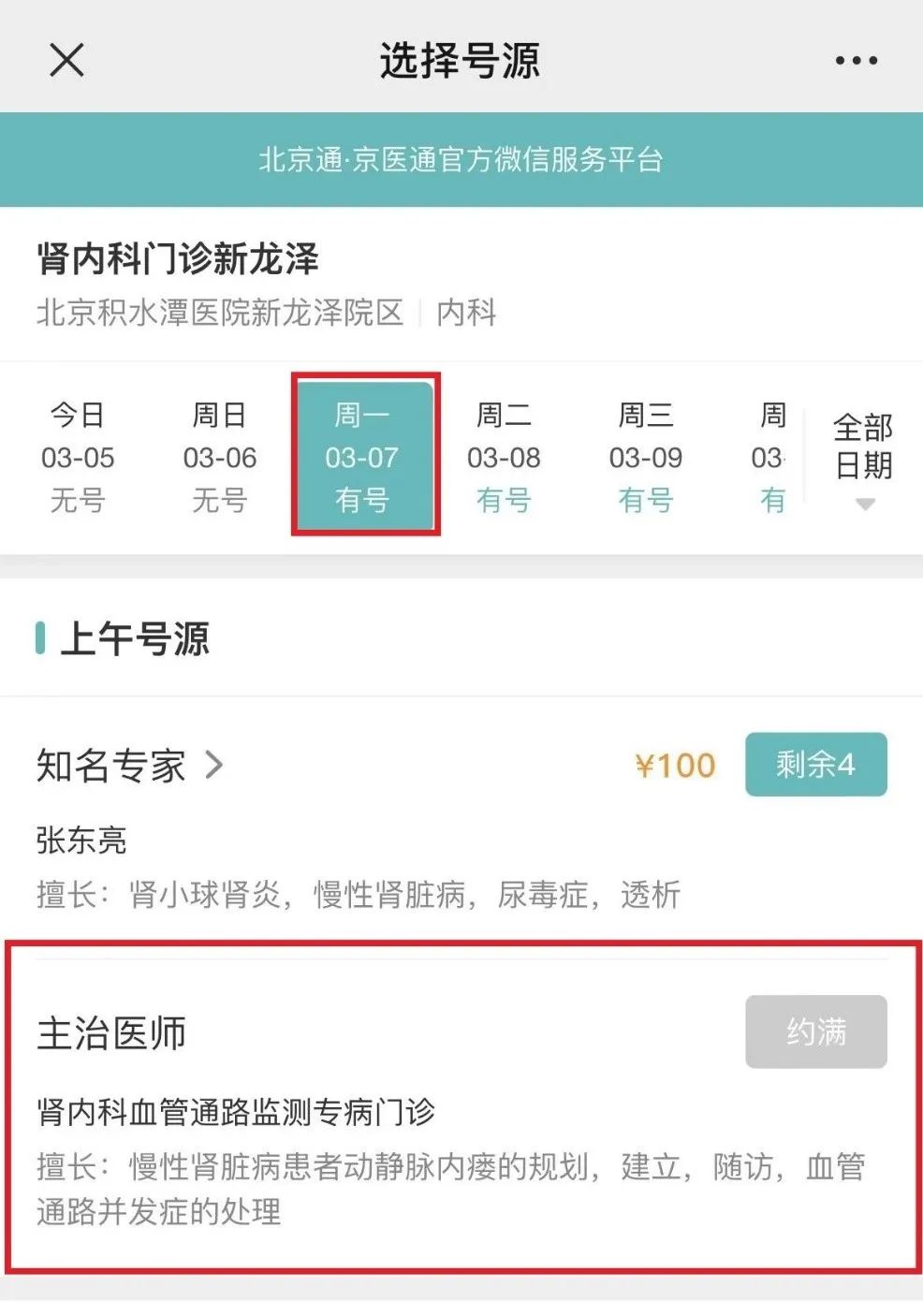 03、选择周一、上午、透析血管通路监测专病门诊