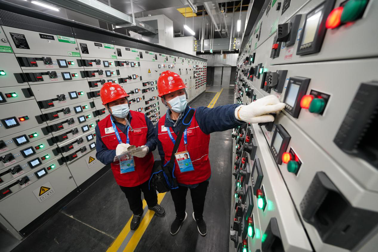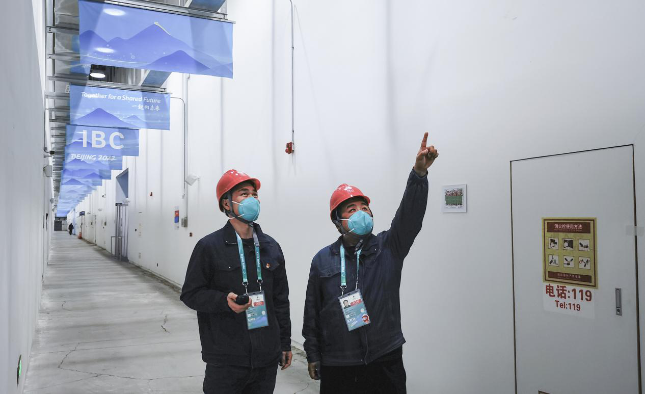 主媒体中心电力保障团队队员开展日常巡视工作,为冬残奥会开幕做好电力保障。(摄影 张涛)