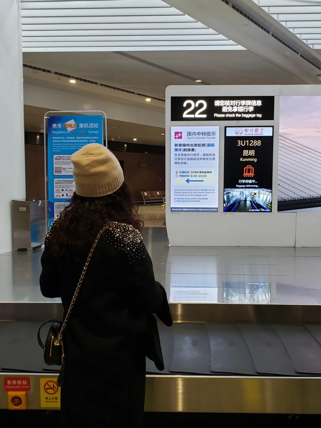 日日精进,从全流程跟踪到全流程可视化,大兴机场于2021年9月25日在国内首发上线“视频直播全程查行李”服务产品,从仅能提供位置和时间的信息查询,增加到提供进港行李全流程可视化服务。旅客可在航显屏观看行李拖车在机坪运输、行李在转盘传输的全过程视频。行李操作实现了“明厨亮灶”,让行李运输的全过程置于社会公众监管之下,让旅客更放心。