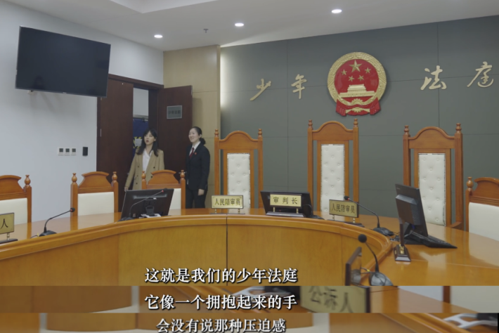 少年法庭的案子很多样,有未成年人被侵害案件,也有校园中涉及生命权、健康权的民事案件,只要涉及到孩子权益的案件少年法庭都会审理。对少年法官秦硕来说,跟踪帮教一个孩子少则三至五年,长则十几年,当孩子们需要法官提供帮助的时候,少年法官要以亲属、朋友的身份来介入家庭,帮助孩子们回归正规。秦硕也是一位母亲,在她看来,作为少年法官不是要惩罚一个孩子,而是为了让他过上正常的人生。少年法庭特有的U字形法台像一双拥抱在一起的手,这双手捧起的是对法治对未成年人的深切关怀和未成年人的成长之路。