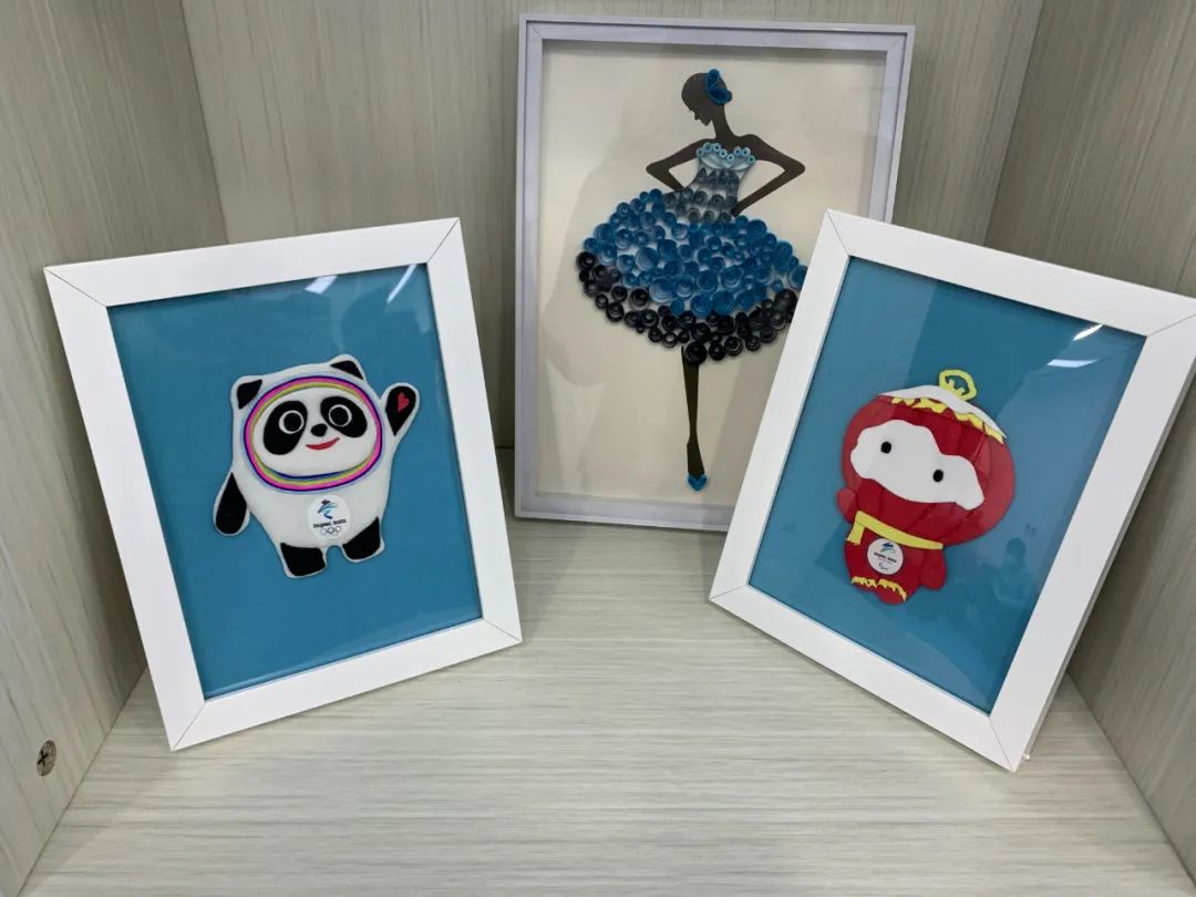 ▲温馨家园的学员制作的冬奥吉祥物手工作品