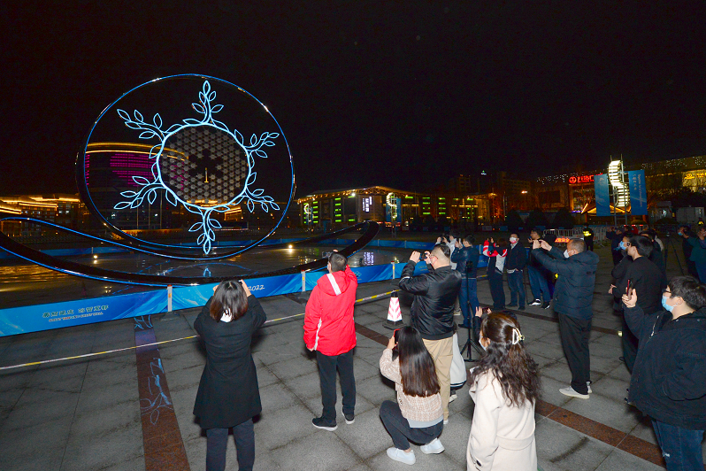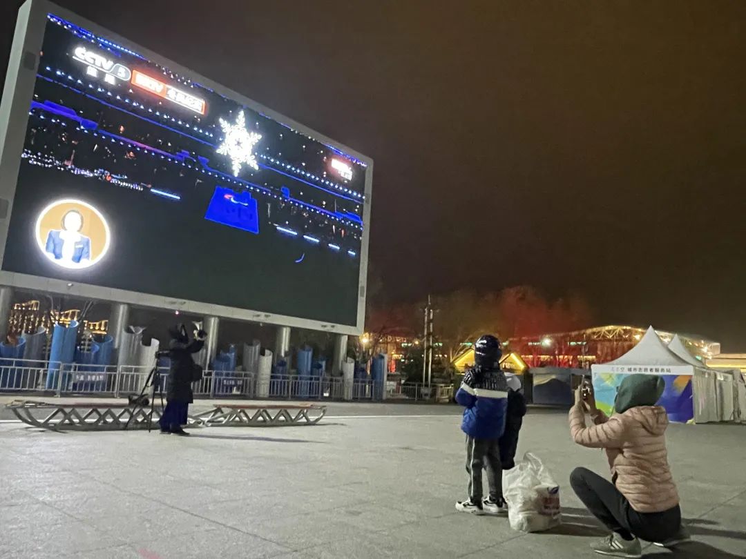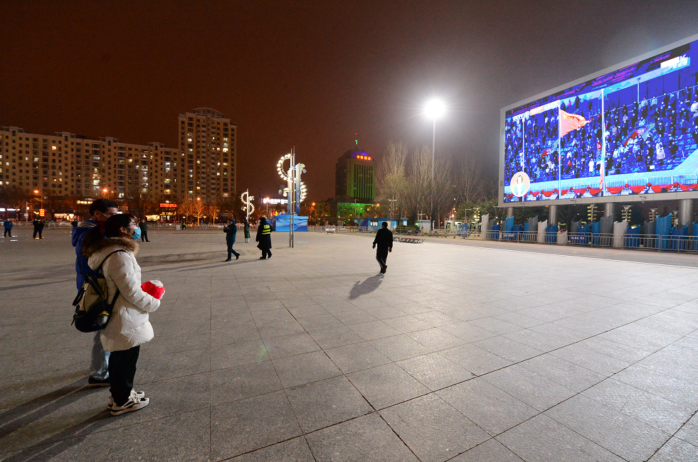 大学生伍宇佳说:“我是从海淀区专门来到延庆冬奥城市文化广场观看闭幕式,虽然今天天气很冷,但是广场上的人还是很多。”