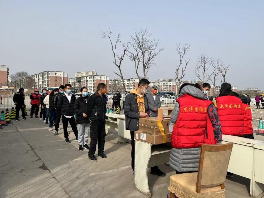 龙泽园街道全力做好核酸检测、疫苗接种等相关工作。在三合庄核酸检测点,现场工作人员提醒居民们佩戴好口罩、做好信息登记并保持一米距离排队进行检测。