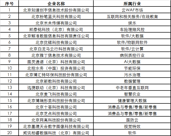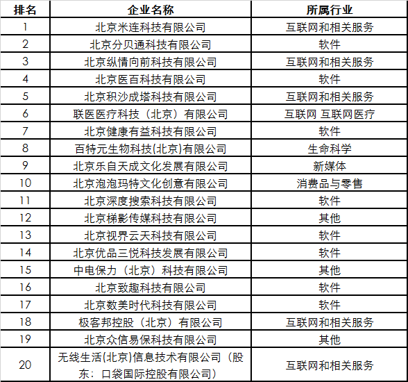 2021朝阳高科技高成长20强榜单