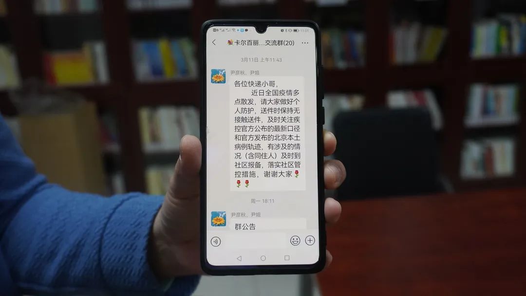 卡尔百丽社区居委会副主任陈嘉:“我们为社区的快递外卖小哥组建了专门的微信交流群,在加强防疫宣传和管理的同时,积极引导辖区快递外卖小哥等新就业群体融入基层治理,以实际行动筑牢社区疫情防控安全网。”