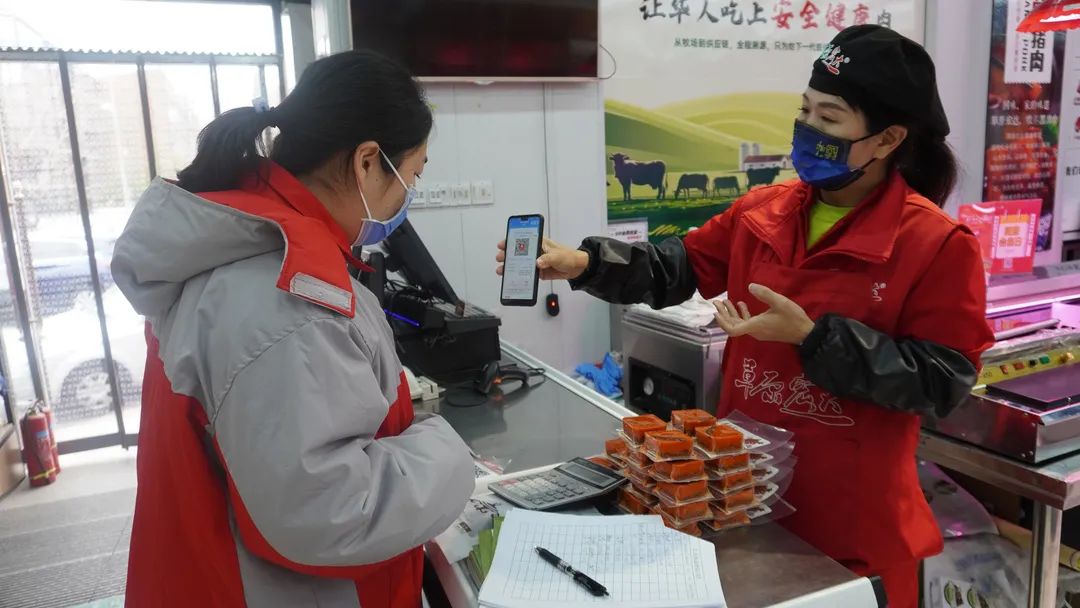 △工作人员检查商户疫情防控工作。