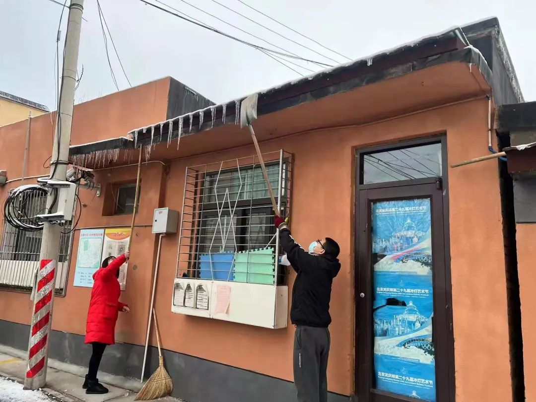 为保障居民安全出行,香水园街道发动各社区工作人员开展扫雪铲冰行动,确保百姓出门脚下不沾雪、不打滑。