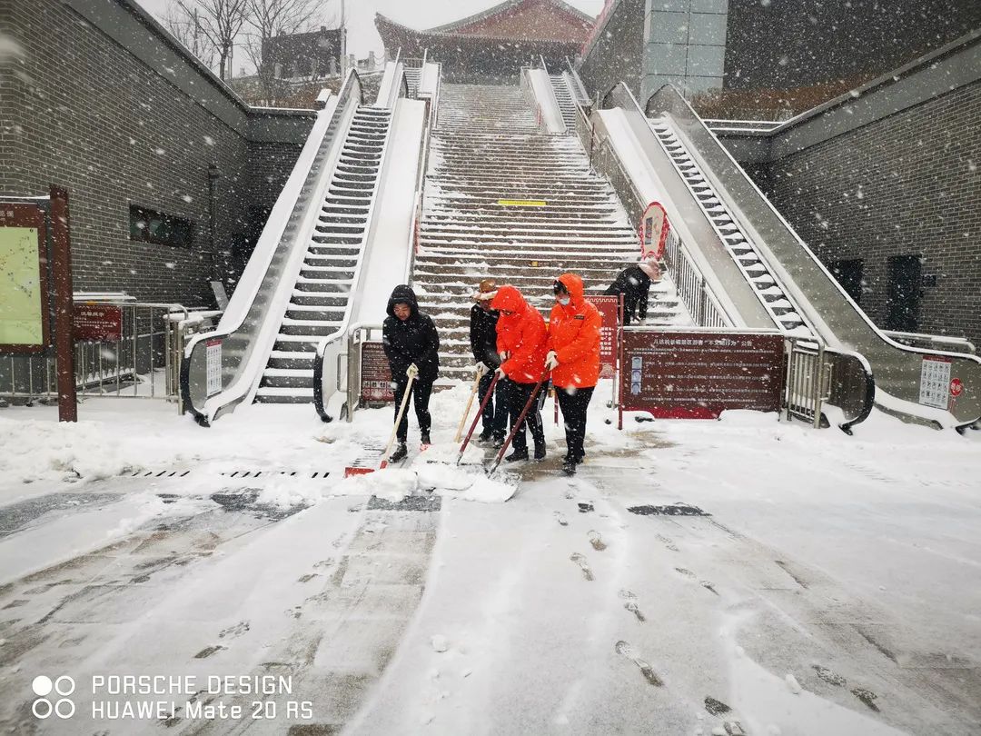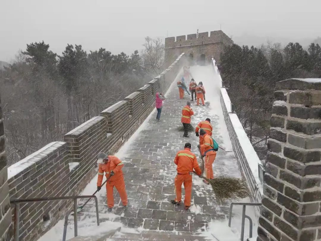 为切实做好扫雪铲冰工作,八达岭文旅集团提前部署,召开专题会议应对降雪。根据各景区实际情况采取撒融雪剂、人工铲雪、机器铲雪3种方式有序开展扫雪铲冰工作。