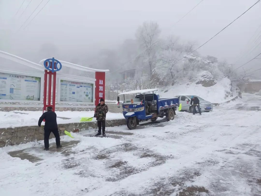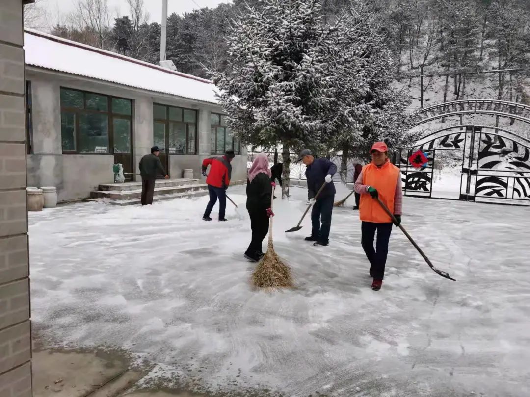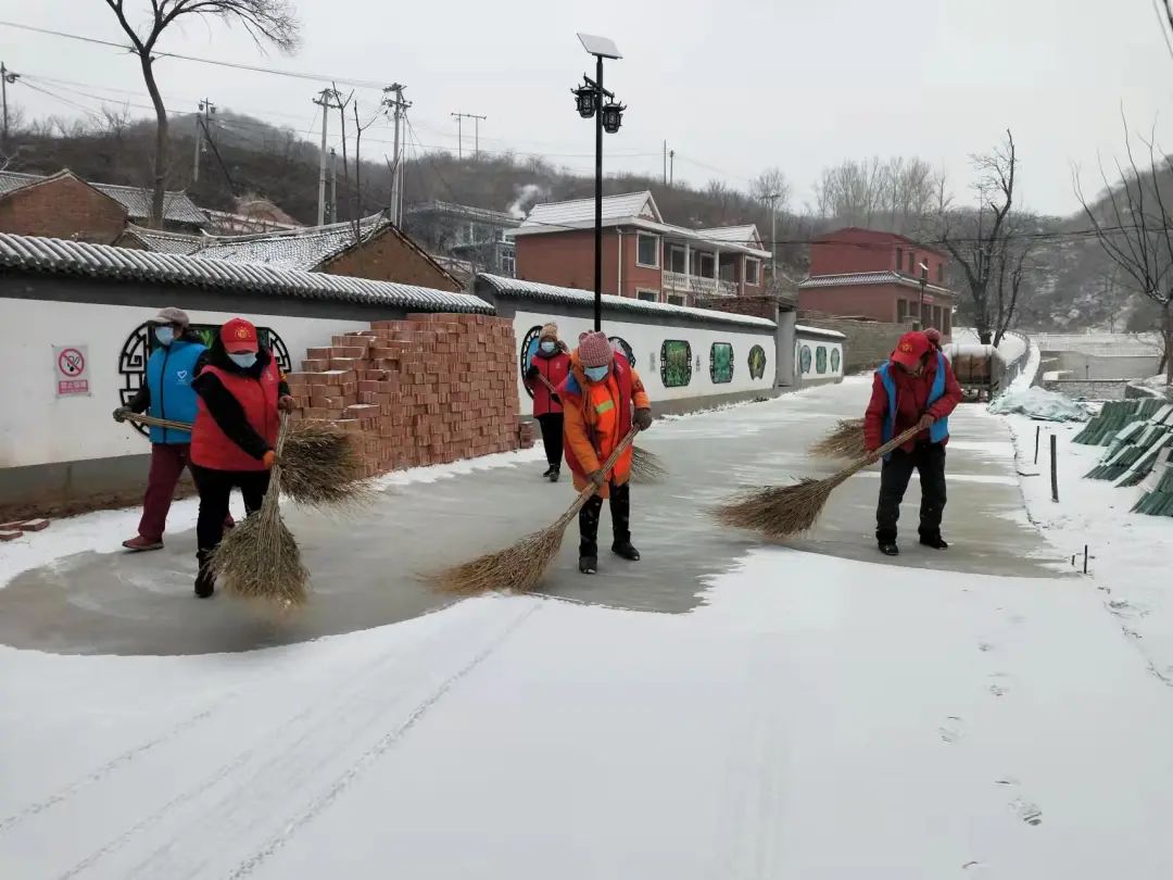 井庄镇各村党员干部、志愿者、退役军人、群众纷纷行动起来,戴上手套、拿起铁锹,积极开展扫雪铲冰工作,确保道路出行畅通。